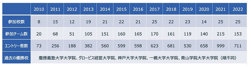 これまで北海道から九州まで、全国のビジネススクールから5,000名以上の学生が本大会に挑みました。