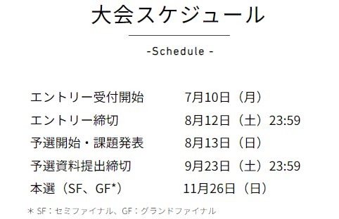 予選:8月13日(日)~9月23日(土) 本選:11月26日(日)