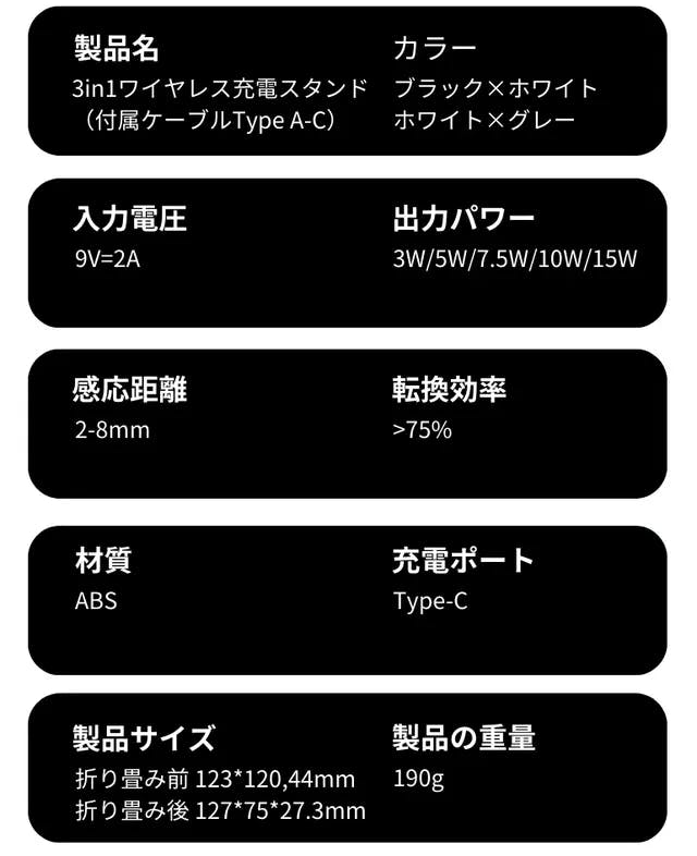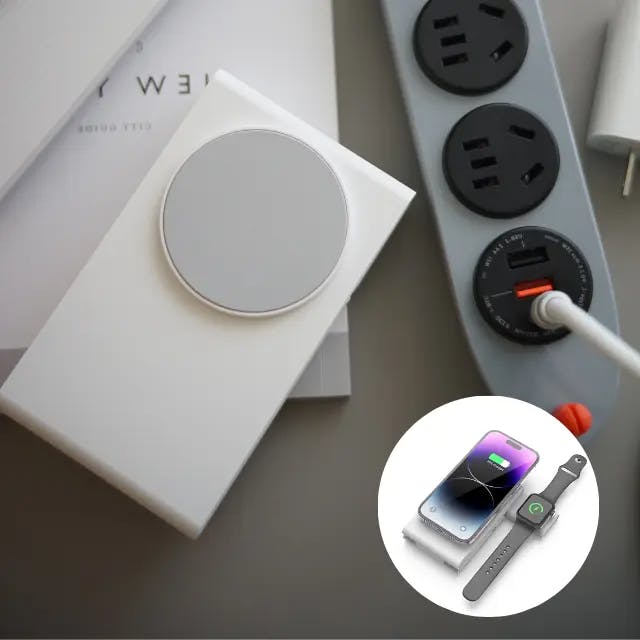 A. 2022.11月現在、以下に対応しています。iPhone:12シリーズ以降(12,13,14,15,Pro,Pro MAX)Apple Watch:2 シリーズ以降(2〜9)Air pods :AirPods pro※iPhone X〜11は平置きなら充電可能。(MagSafeがない為)