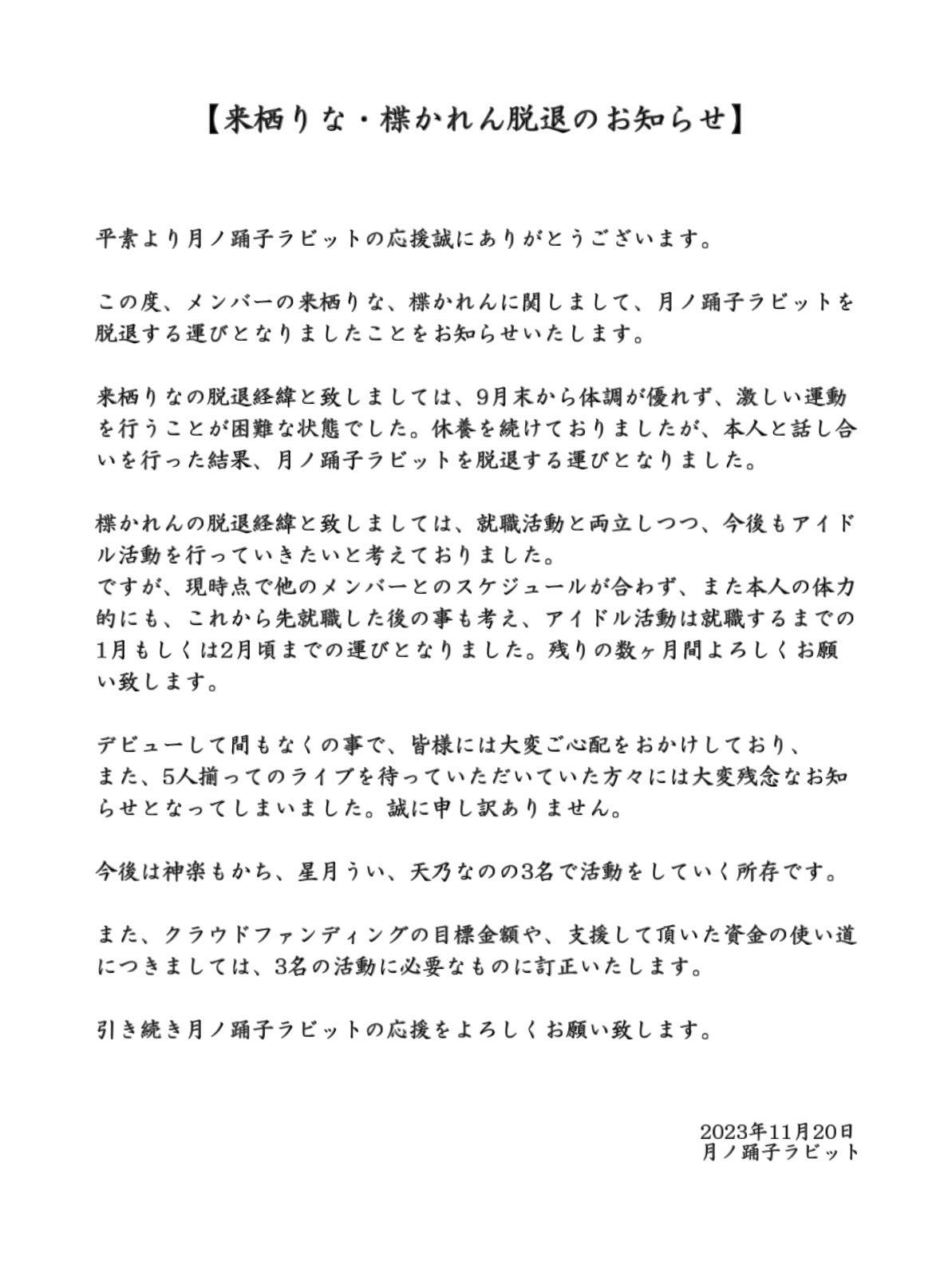 2023/11/20 20:28編集を行うことが出来ないため、こちらで訂正後の金額を記載させていただきます。今回のクラウドファンディングの目標金額は105万円ではなく、85万円になります。【資金の使い道】作詞・作曲代 : 約10万円レコーディング・CDプレス代:約10万円振付け代:約5万円衣装製作代 (5人分): 約18万円グッズ制作代 : 約12万円ライブハウス代(都内終日貸切):約30万円既に支援して頂いた方、5人揃っての活動ではなくなってしまい、誠に申し訳ありません。 もっと見る