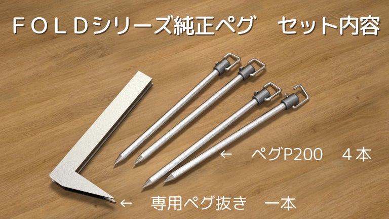 専用ペグ抜きは、FOLDシリーズ純正ペグが、一般的なペグハンマーでは抜き難い形状のため、