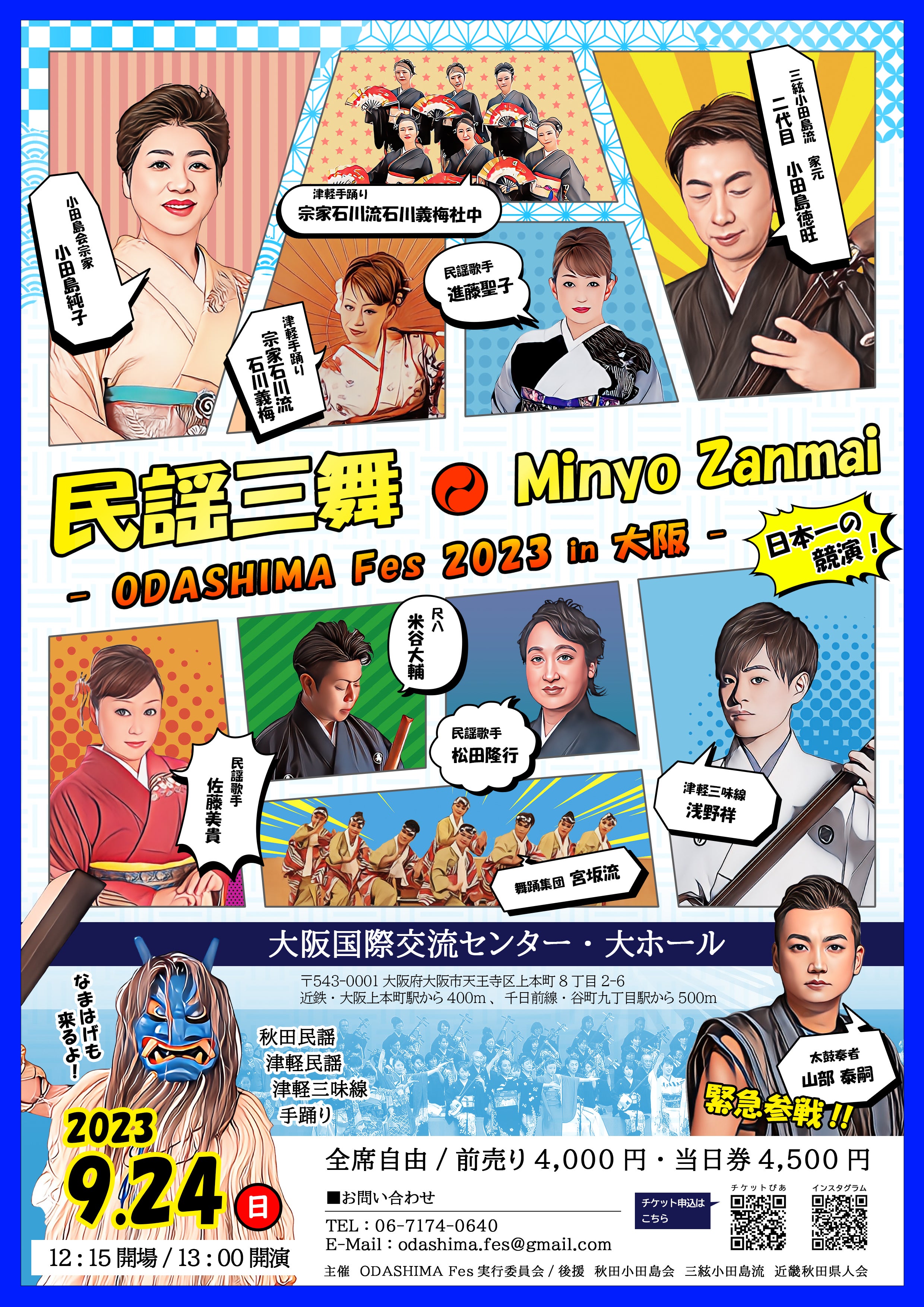 公演タイトルは、『民謡三舞〜Minyo Zanmai−ODASHIMA Fes2023 in大阪−』です。