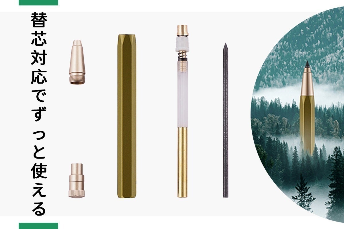 “無限”に書ける鉛筆の芯は交換可能です。鉛筆を分解して替芯を差し込むだけで、長くご利用いただけます。
