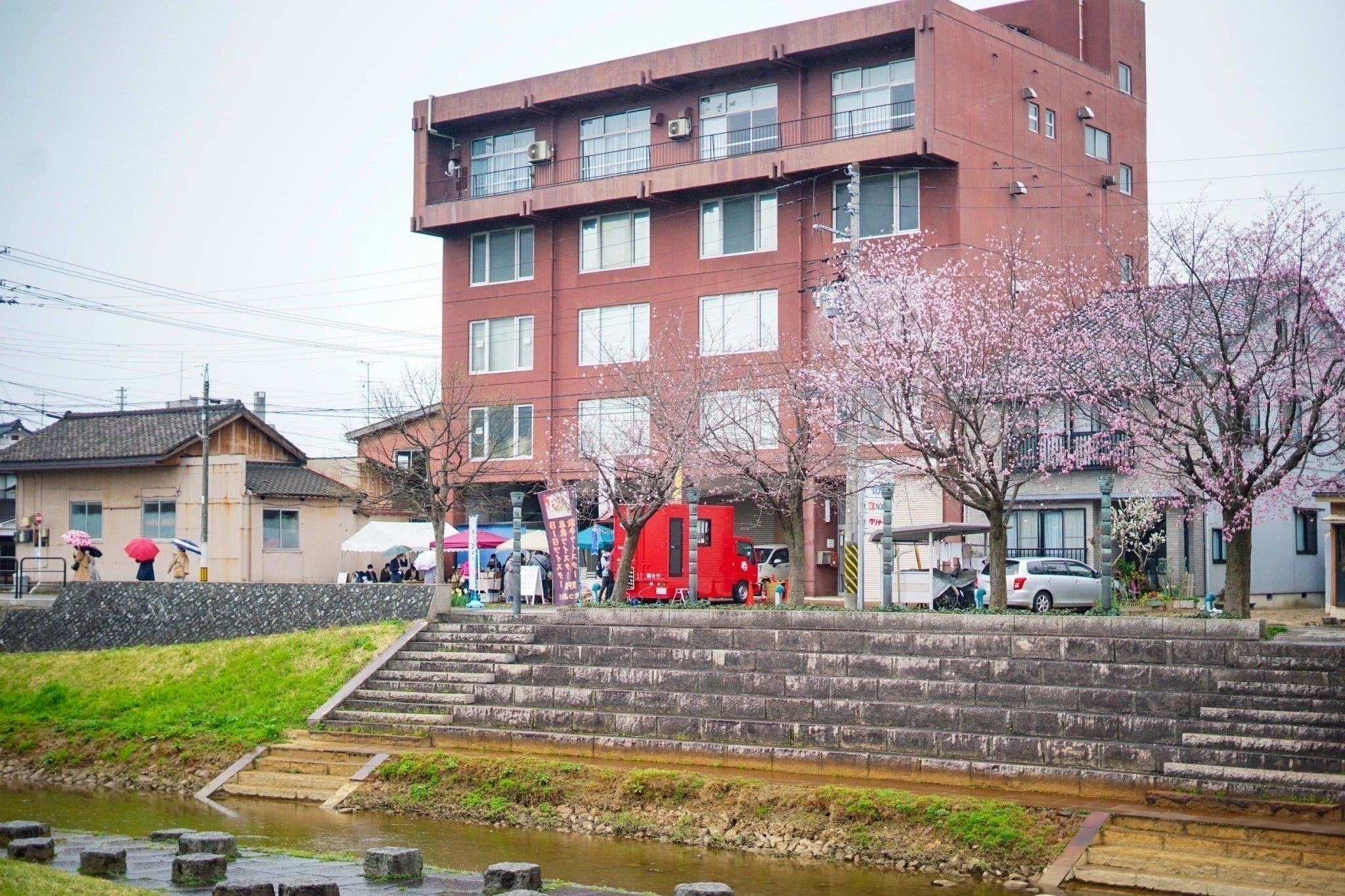 赤いビルはもちろん、向かい側にある平和の森公園や柿川の河川敷にも、人々がわいわいと賑わっている風景を見て、私が子供の頃に遊んでいた柿川の様子を思い出しました。寂しく感じていた街が、再び活気を取り戻したように感じとても嬉しくなりました。