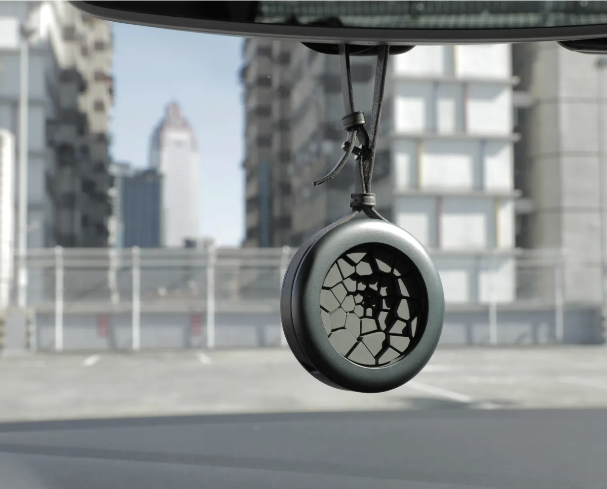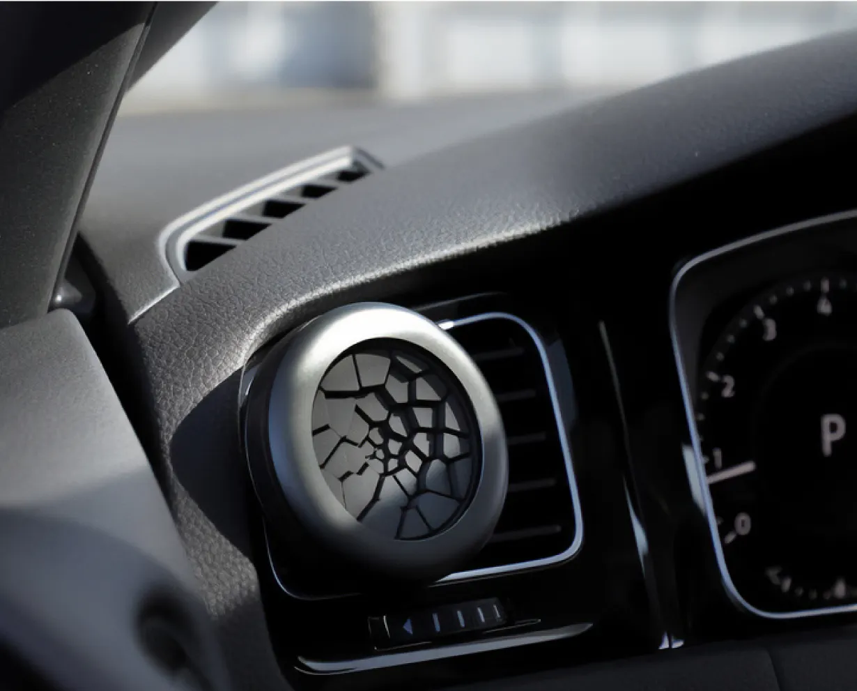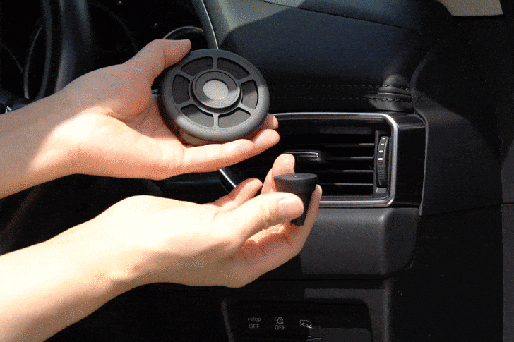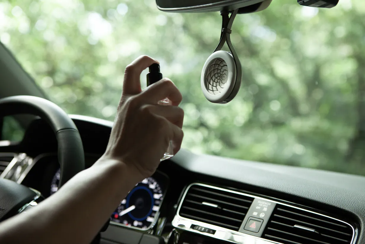 "自分のお気に入りの香水を吹きかけるだけで車内を好きな香りにできる新感覚のディフューザーです"