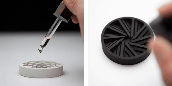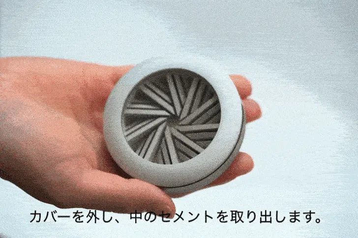 ▲独自に開発した特殊配合のセメントは、香りを吸収した後、乾燥状態でセメント自身のポーラスから上品かつ継続的に香りを放ちます。