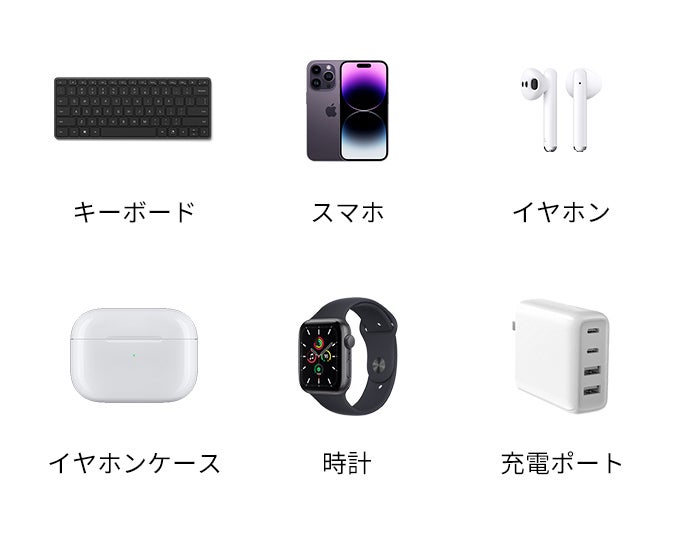 キーボード、スマホ、イヤホン、イヤホンケース、時計、充電ポートなど、狭い隙間の細かいごみまでクリーニングできます。