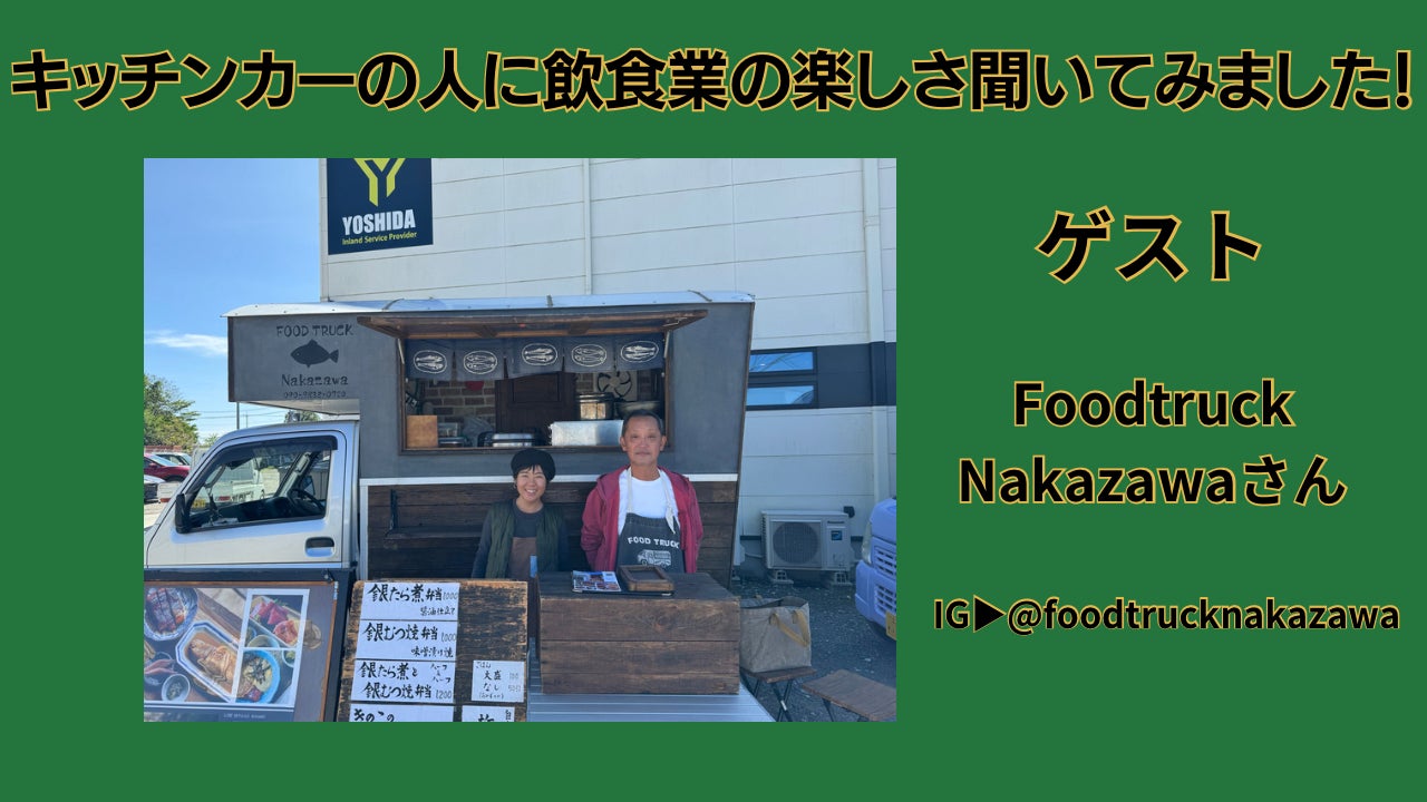 今回のゲストは「FoodtruckNakazawa」のナカザワさんに来ていただき、お話を聞かせて頂きました。