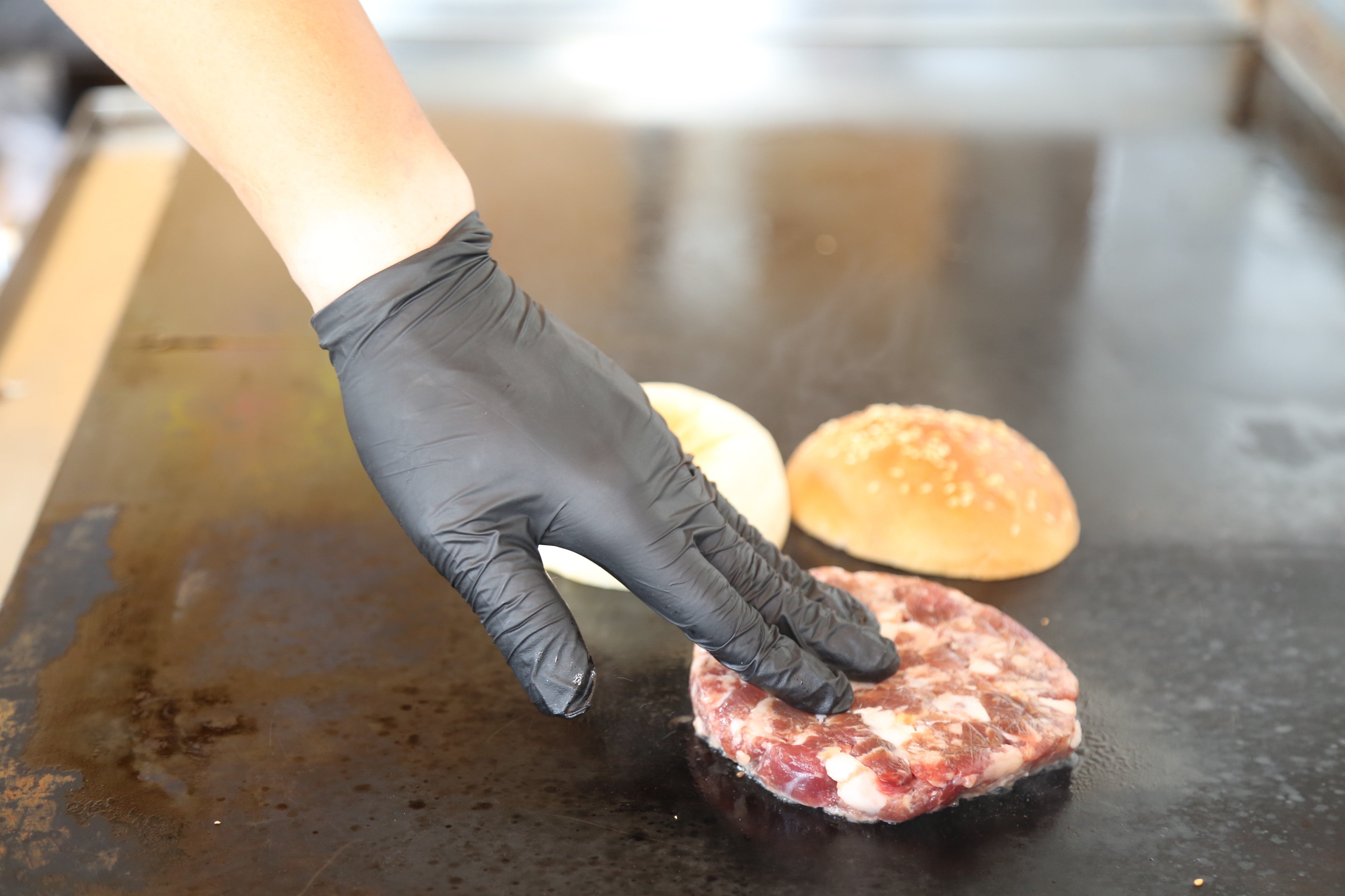 施設の方で野菜のカットやお肉・バンズのカット、パティ作り、等を児童の皆さんにしてもらって、お肉、バンズを私瀬古がキッチンカーの鉄板で丁寧に焼かせて頂きます。