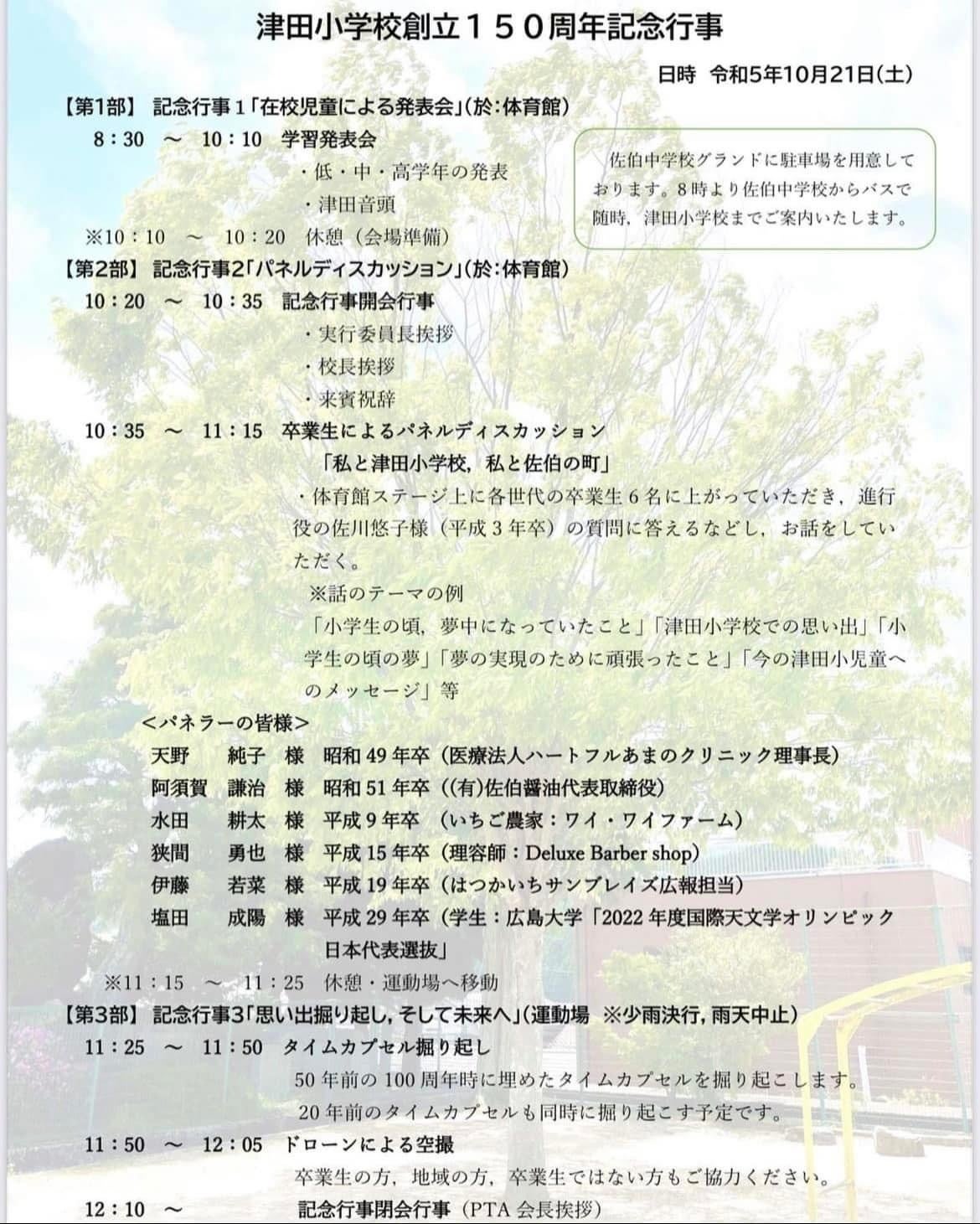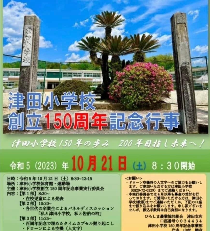 明日10/21になんと津田小学校の150周年記念行事が開催されます!!