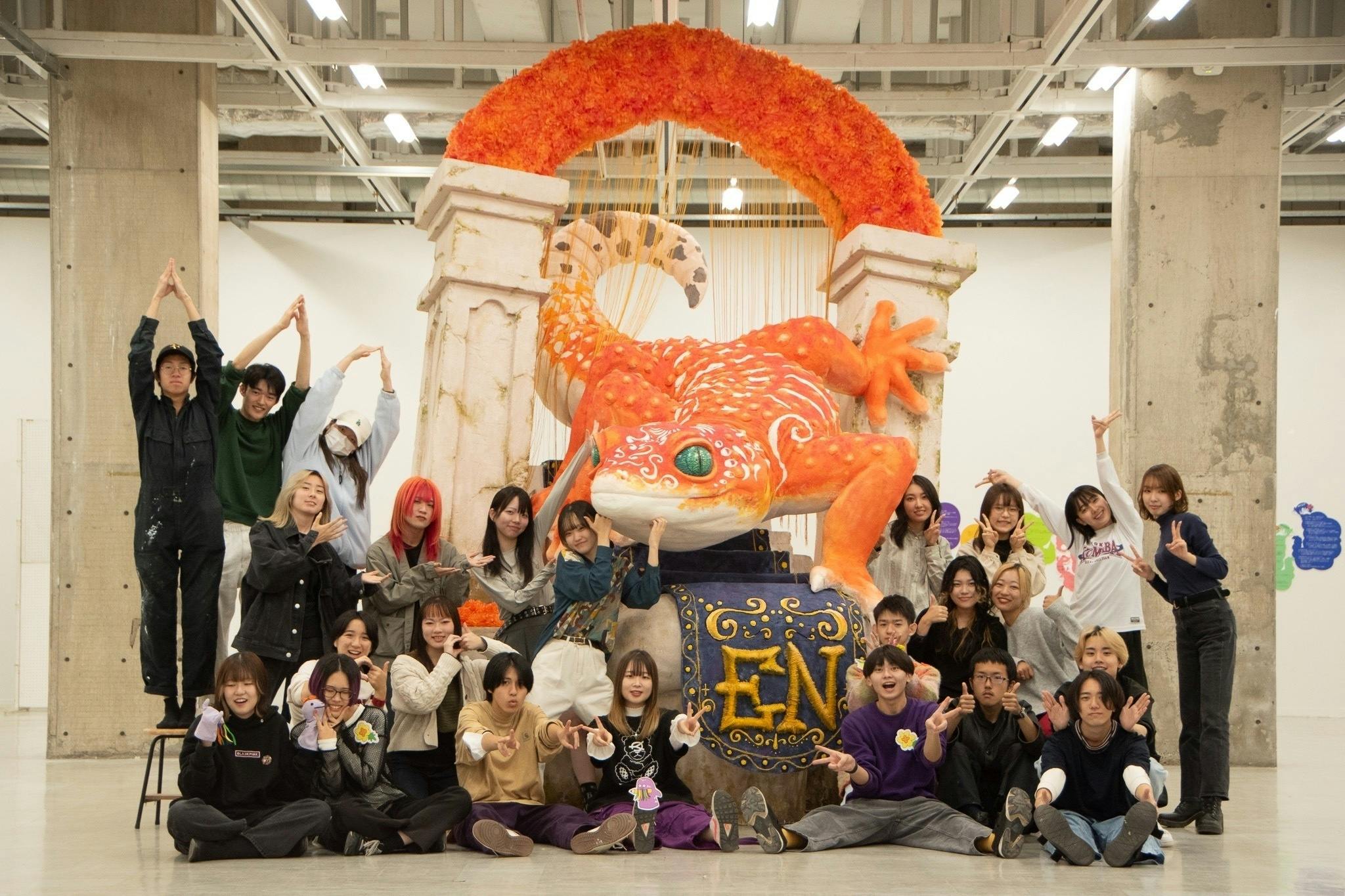 この企画は2022年より「大きな立体物を制作して芸術祭を盛り上げたい」という当校学生の意思によって立ち上げられました。そして人と人との「ご縁」を大切にし、ワイワイ楽しい「宴(うたげ)」のような雰囲気の団体になるように「en(えん)」と名付けられました。