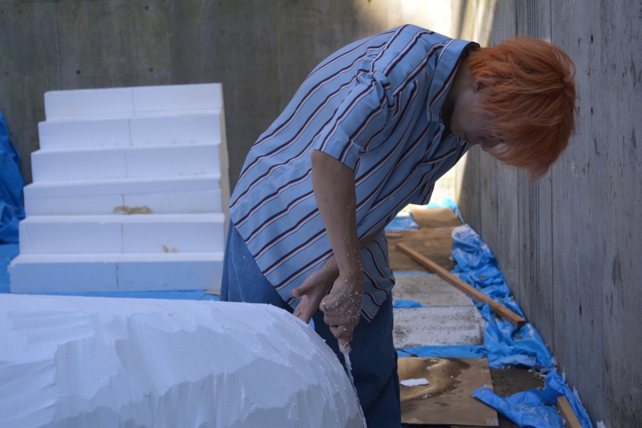 ライン取りと慎重な切り出し、削り出しを重ね、だんだん作品の形が見えてきました!