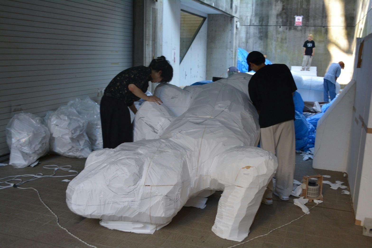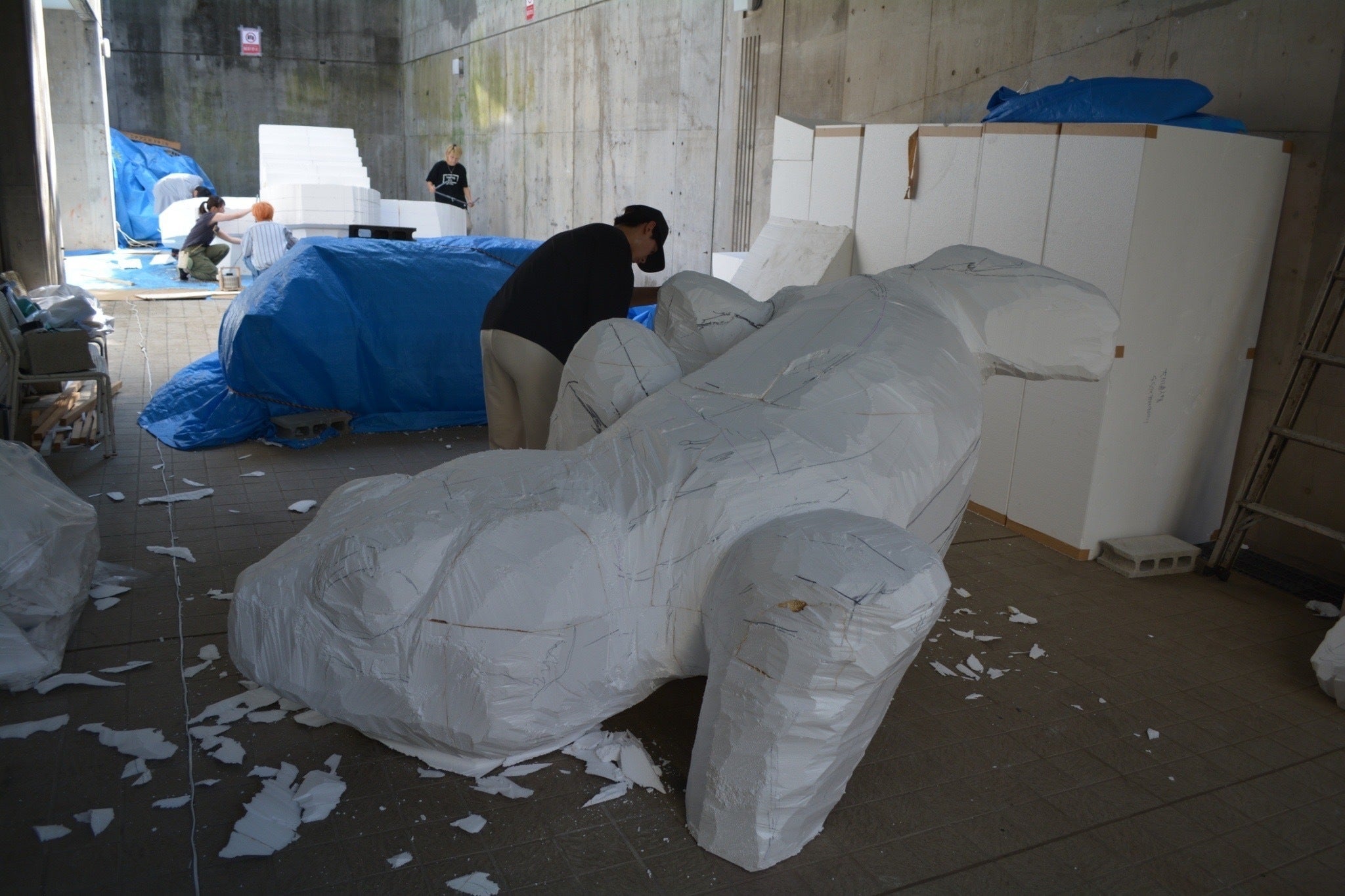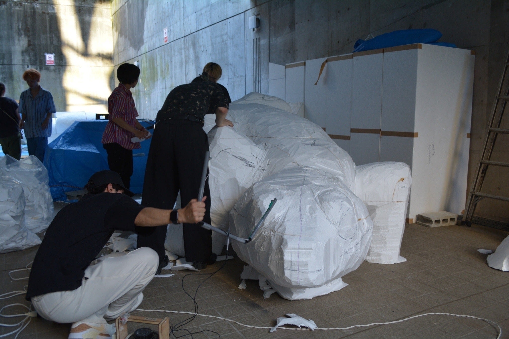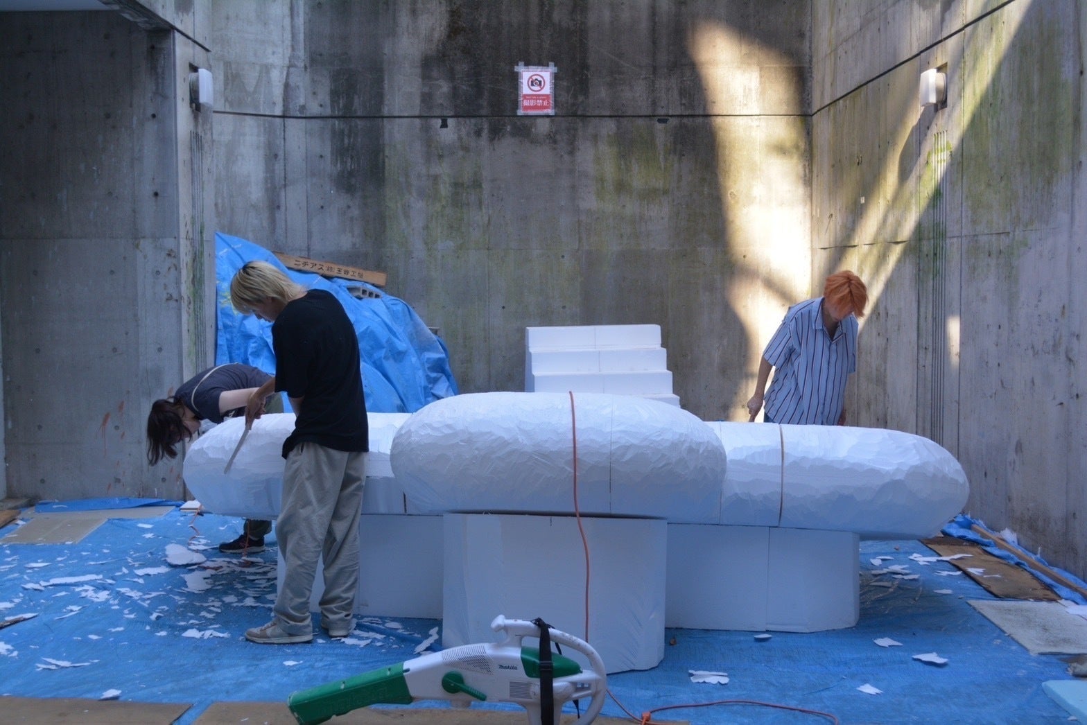発泡スチロールにマジックペンでアタリをとり、どんどん切り出していきます!