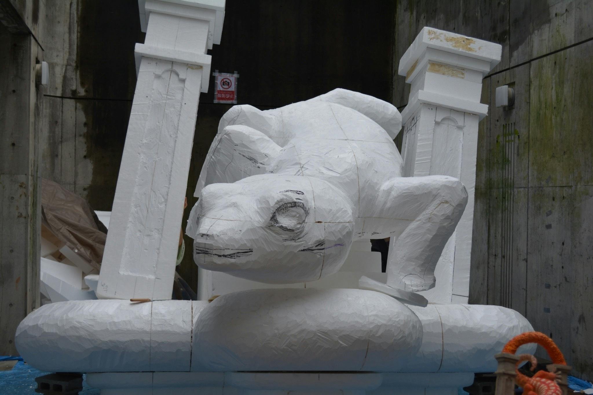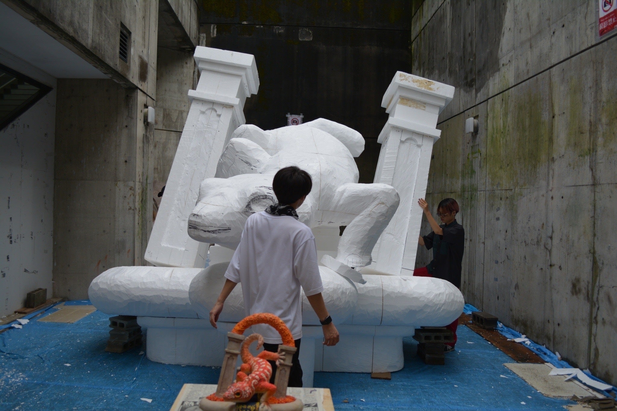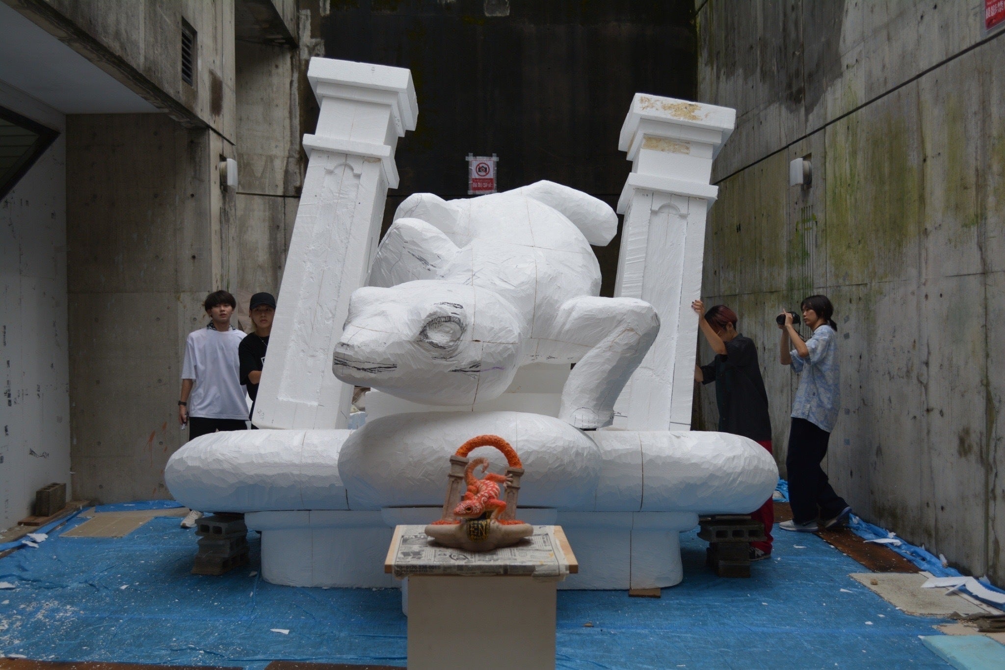 "土台に柱とヤモリを乗せてみる!"