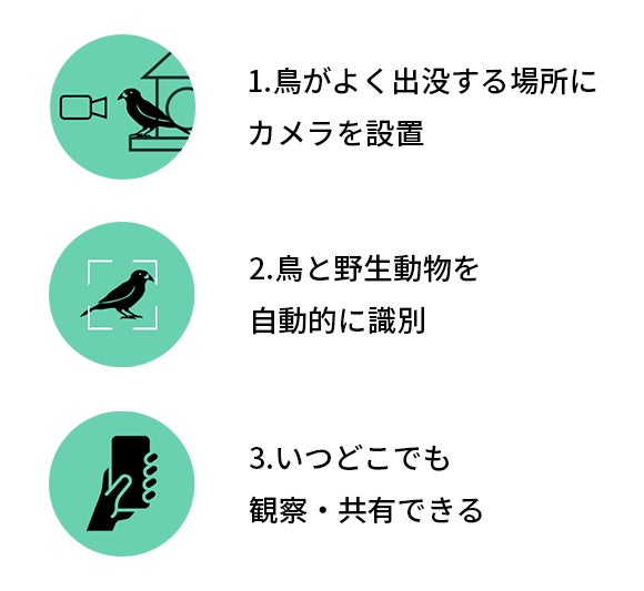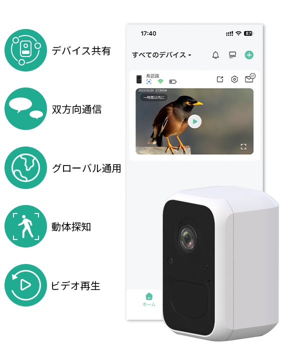 「V3 Cam」にお任せください!AI認識機能が搭載され、専用アプリ「VicoHome」を使って、鳥の動きをリアルタイムで観察・認識することができます。