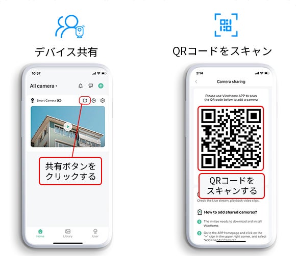 ●専用アプリ「VicoHome」でプッシュ通知・デバイス共有