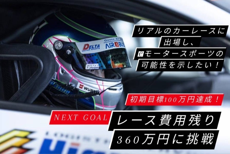 まずは目標金額を100万円に設定させていただき、達成することができましたらNEXTゴールとして残りのレース参戦費用360万円を目標とさせていただきたいと思います。