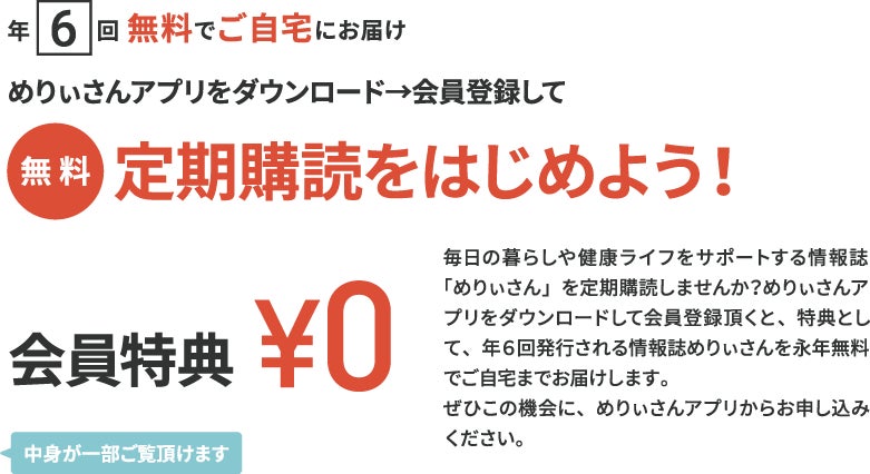 5.1万部発行されている、50代の健康ライフサポート情報雑誌「めりぃさん」から