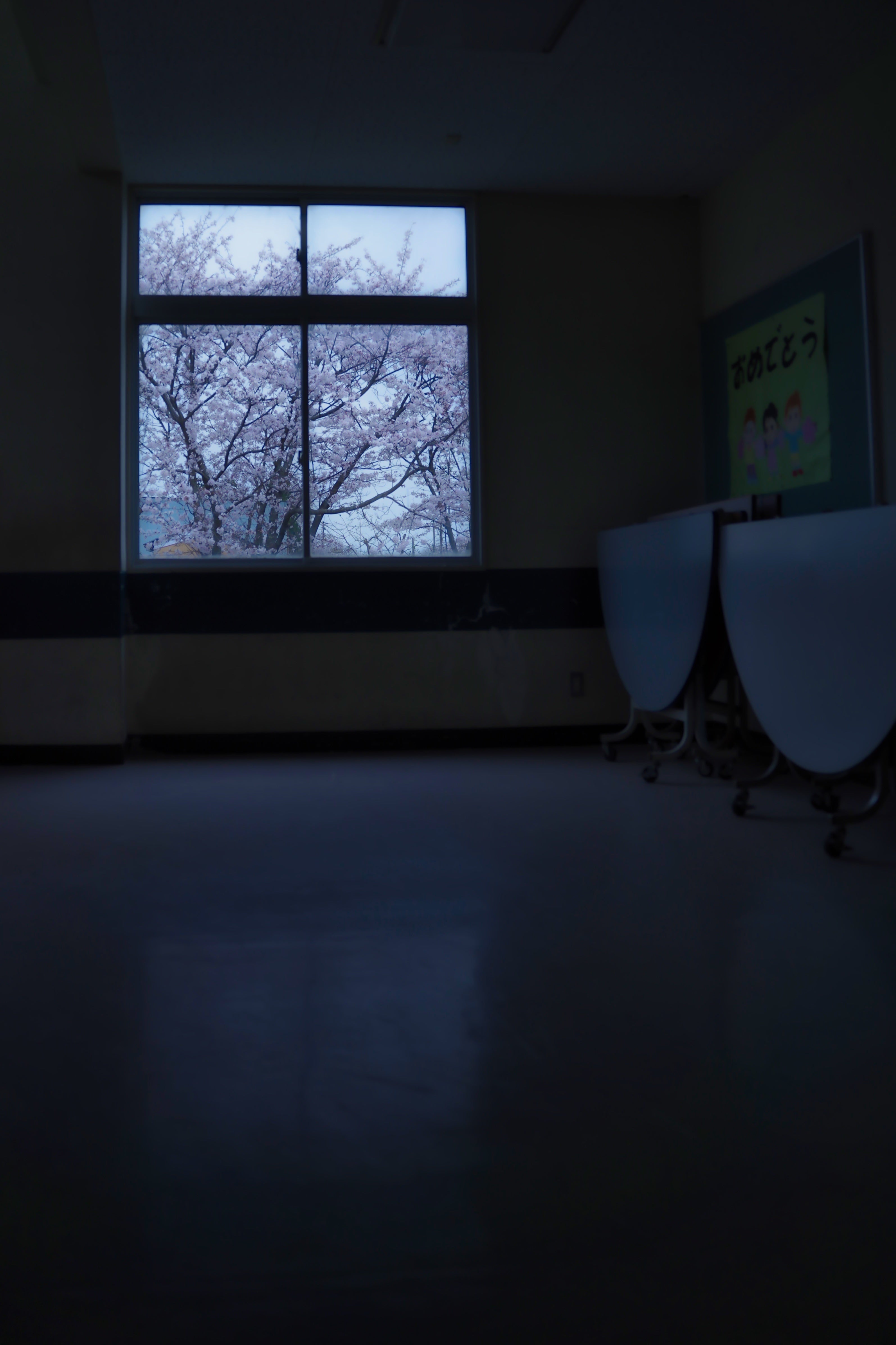 一年生の下駄箱がある昇降口の窓から