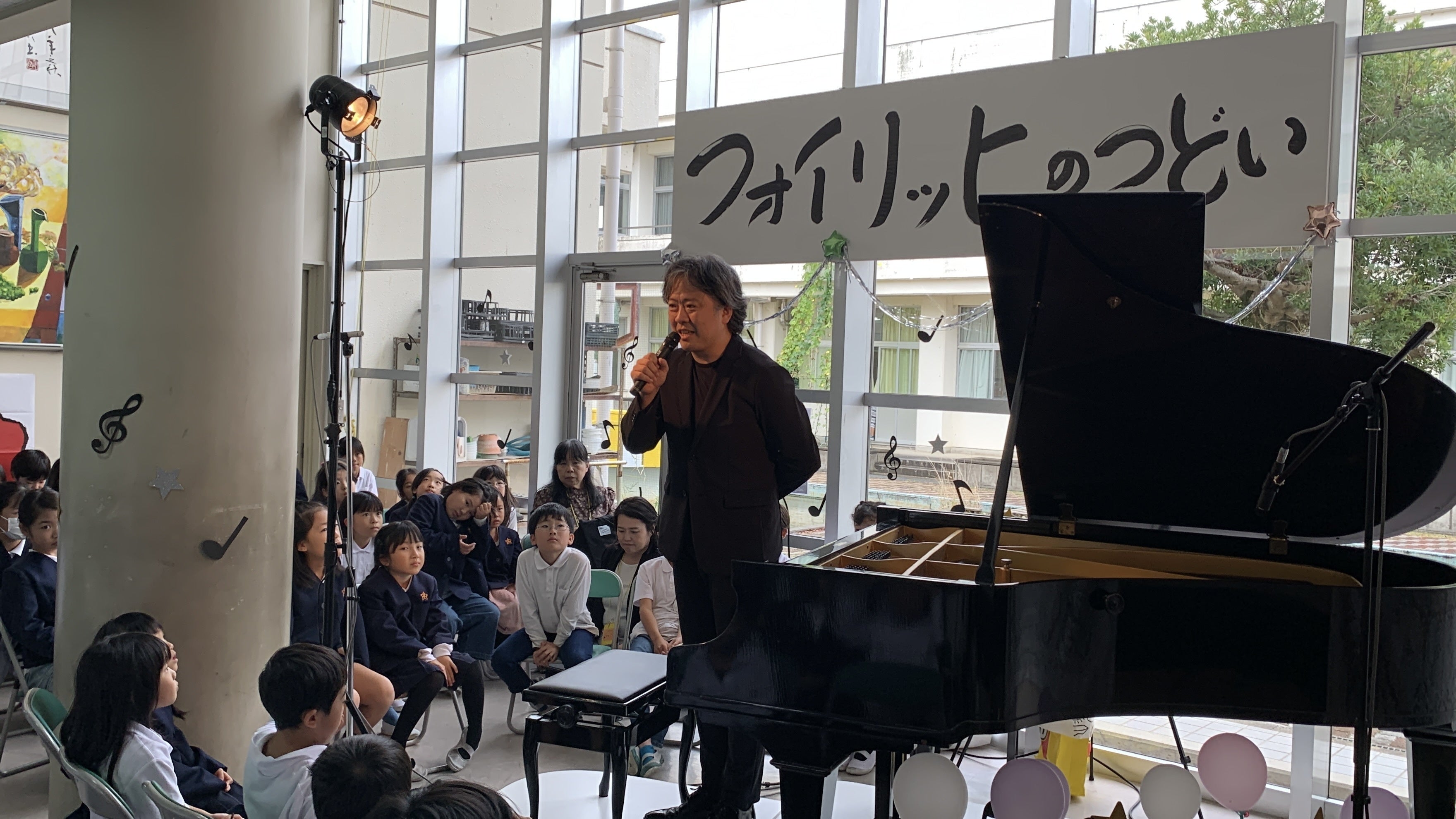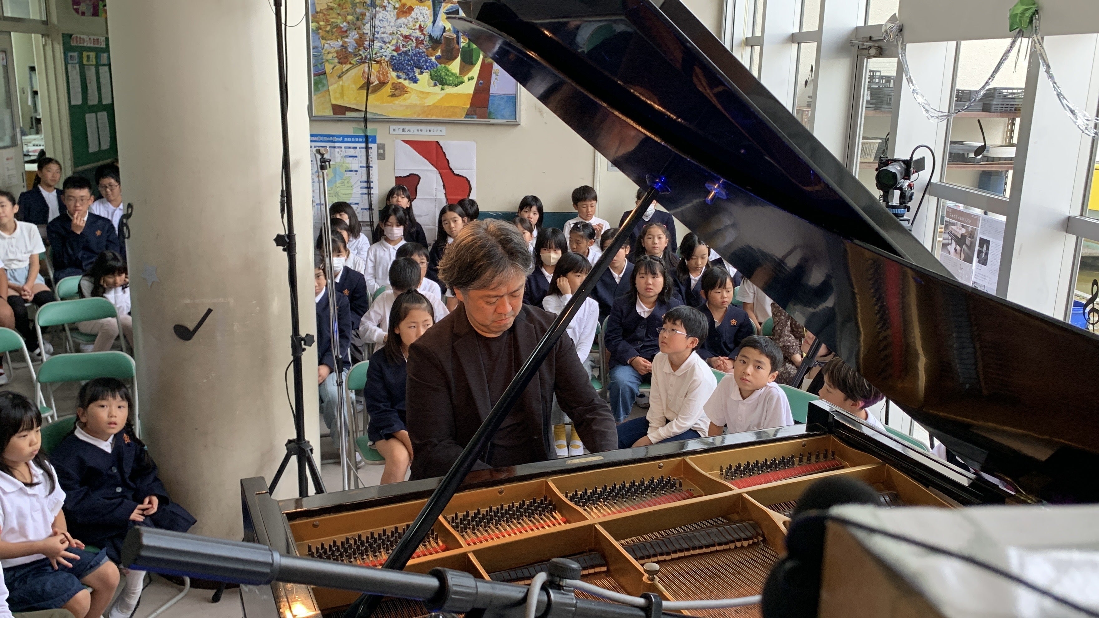 会場には児童90人、支援者様対象の回は50人を超えるお客様が会場につどい、末永さんの演奏を堪能していただきました。