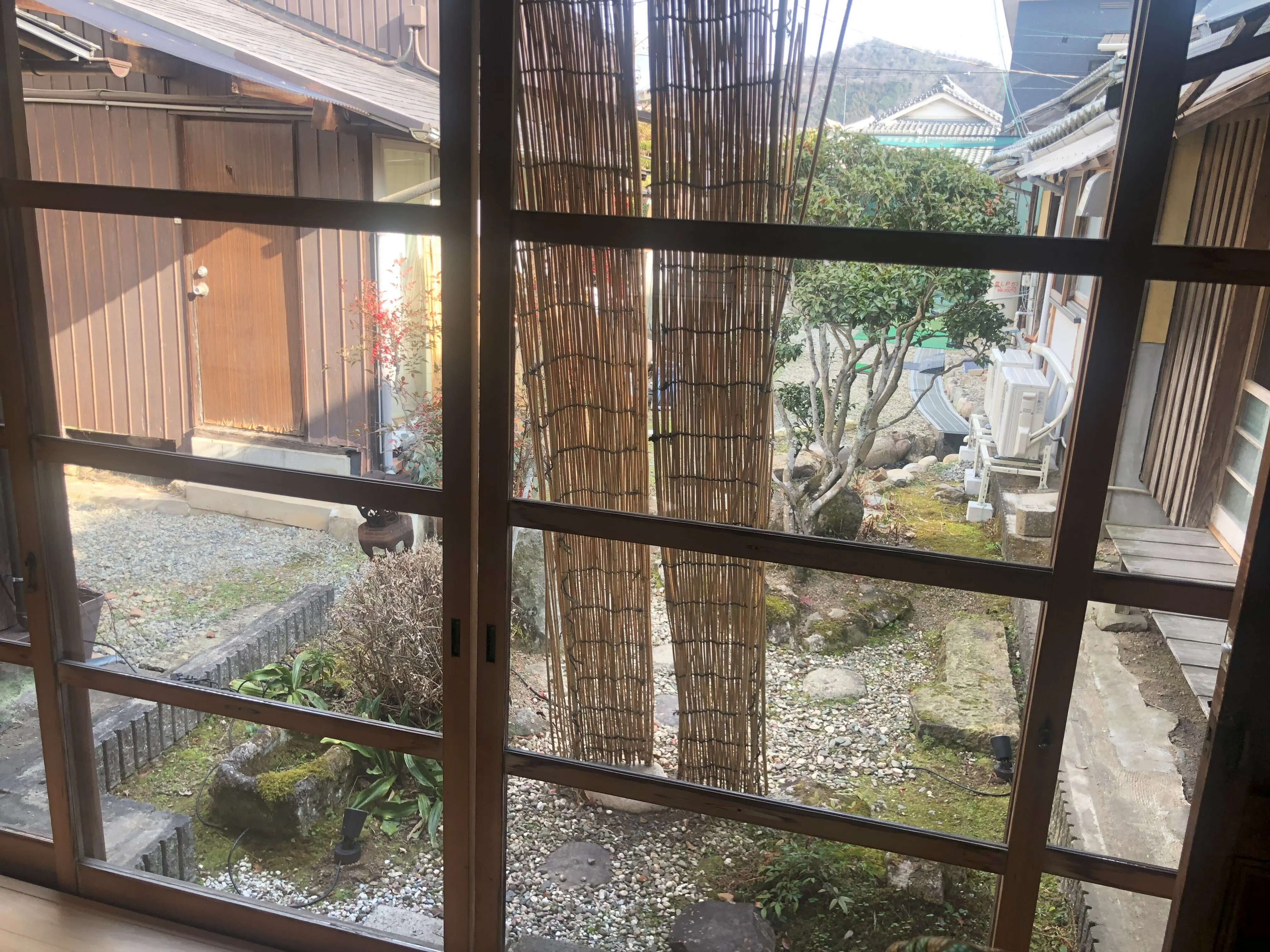 こちらの中庭に竹垣を設置し、各お部屋から、趣の違う庭を左右両側の窓からお楽しみ頂けるようにする予定です。