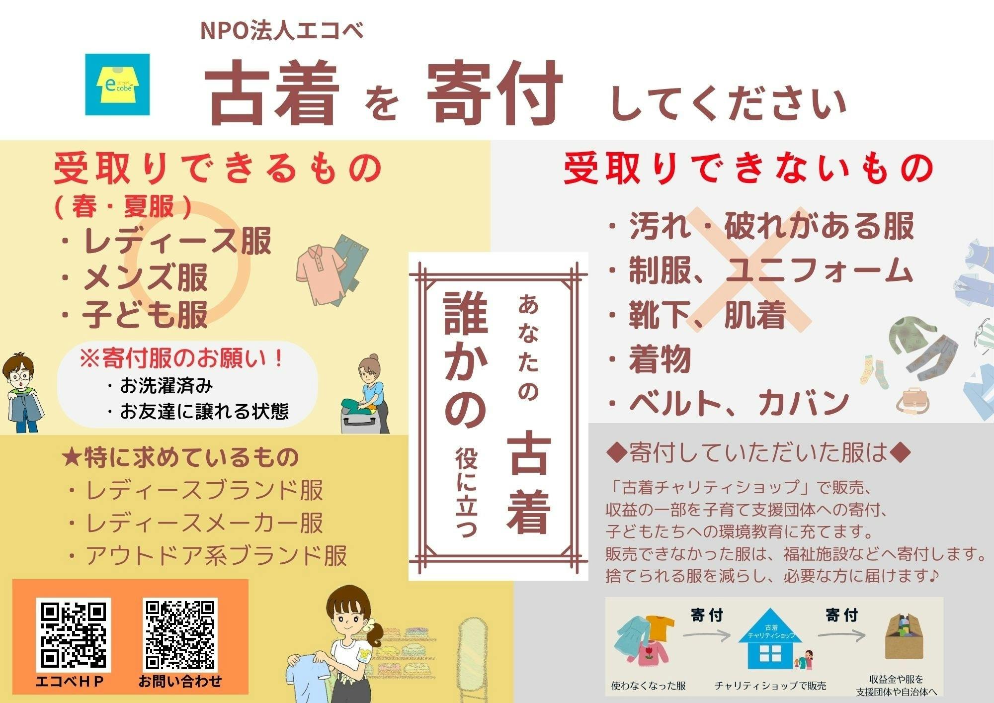 チャリティショップのオープンに向けて、古着の寄付を大募集します!