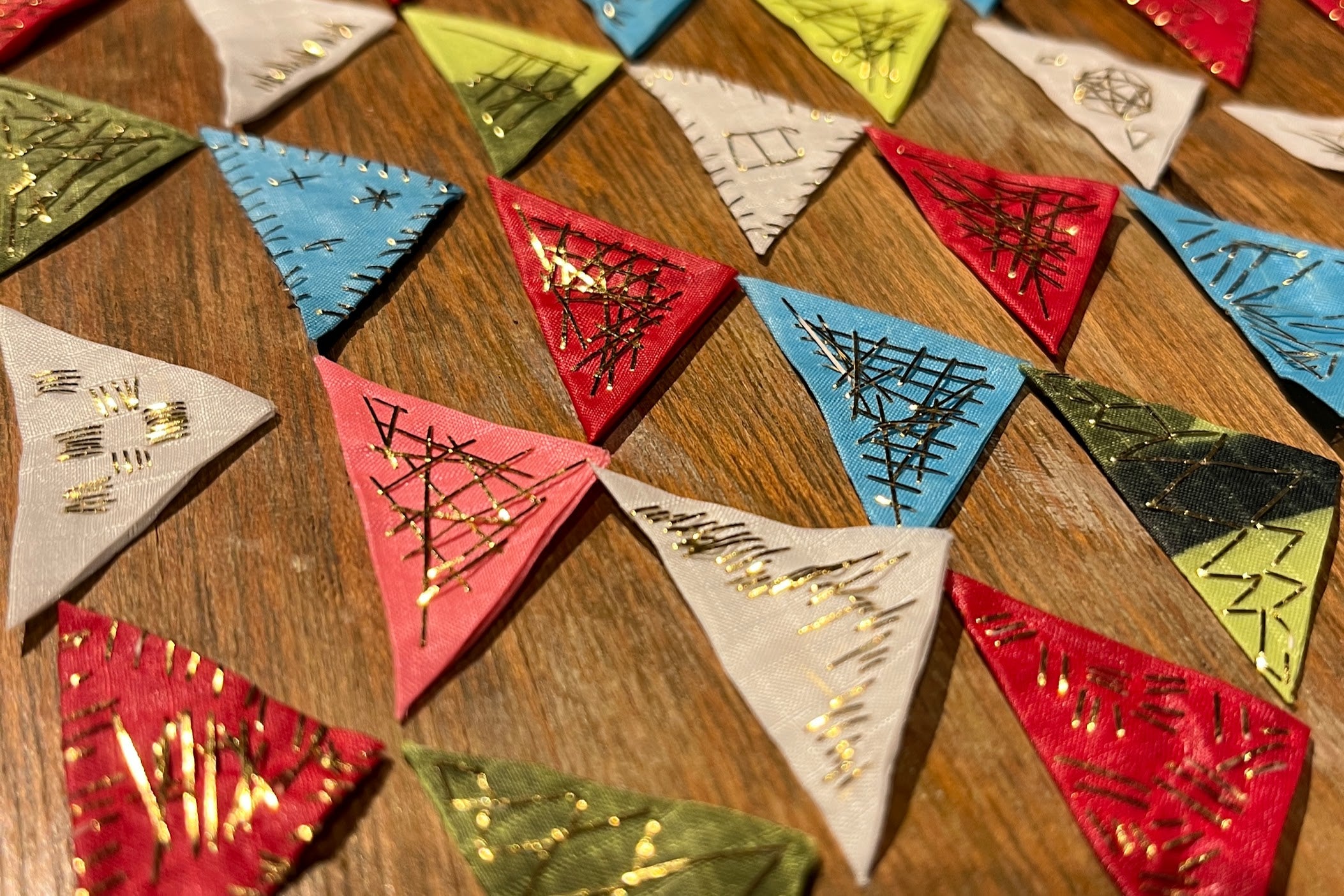海での役目を終えた帆と福祉作業所のクリエイターさんの金糸刺繍、