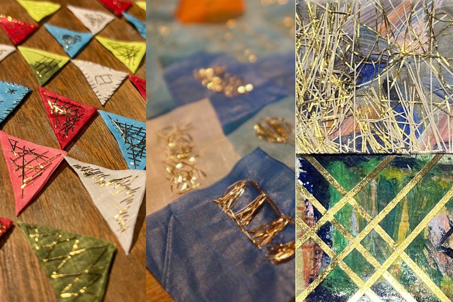 B型就労継続支援事業所で働くクリエイターさんが手掛ける、金糸が輝くアート作品。
