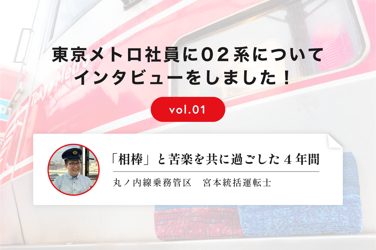 A.子どもの頃にお気に入りだった絵本の表紙が丸ノ内線02系でした。そのため、小さい頃から親しみがあります。小さいころから見ていた丸ノ内線02系の運転士になることが出来て嬉しかったです!