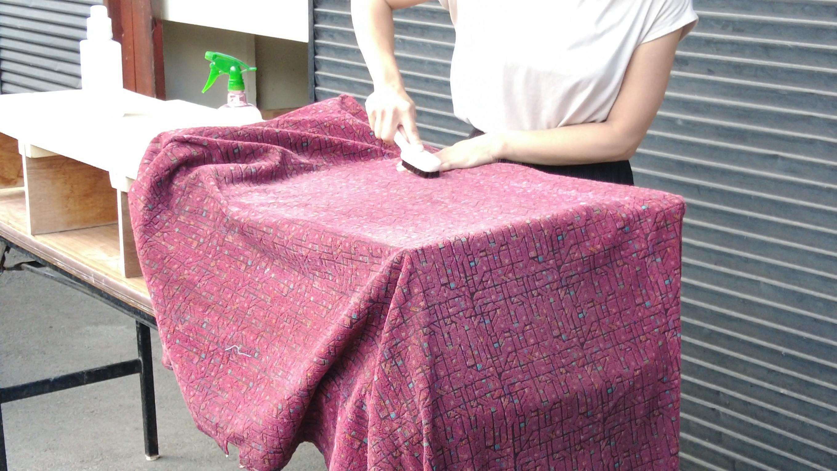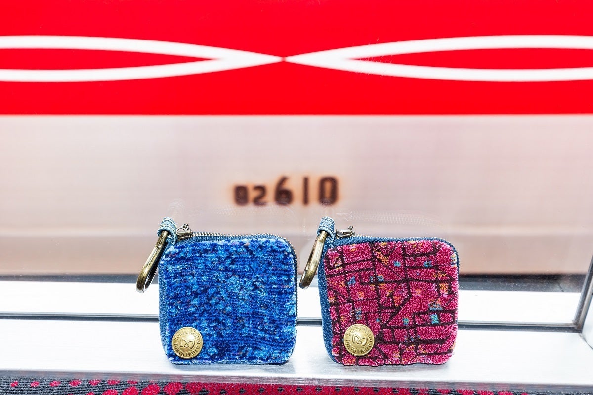 廃棄される車両から、つり革、網棚、手すり、カーテン等、色々な部品を採取し検討を進める中、中古品とはいえ生地がしっかりしており、きれいに洗濯をすればまだまだ活用方法が柔軟に考えられるのではと目を付けたのが今回の第一弾商品に活用した座席シート生地になります。