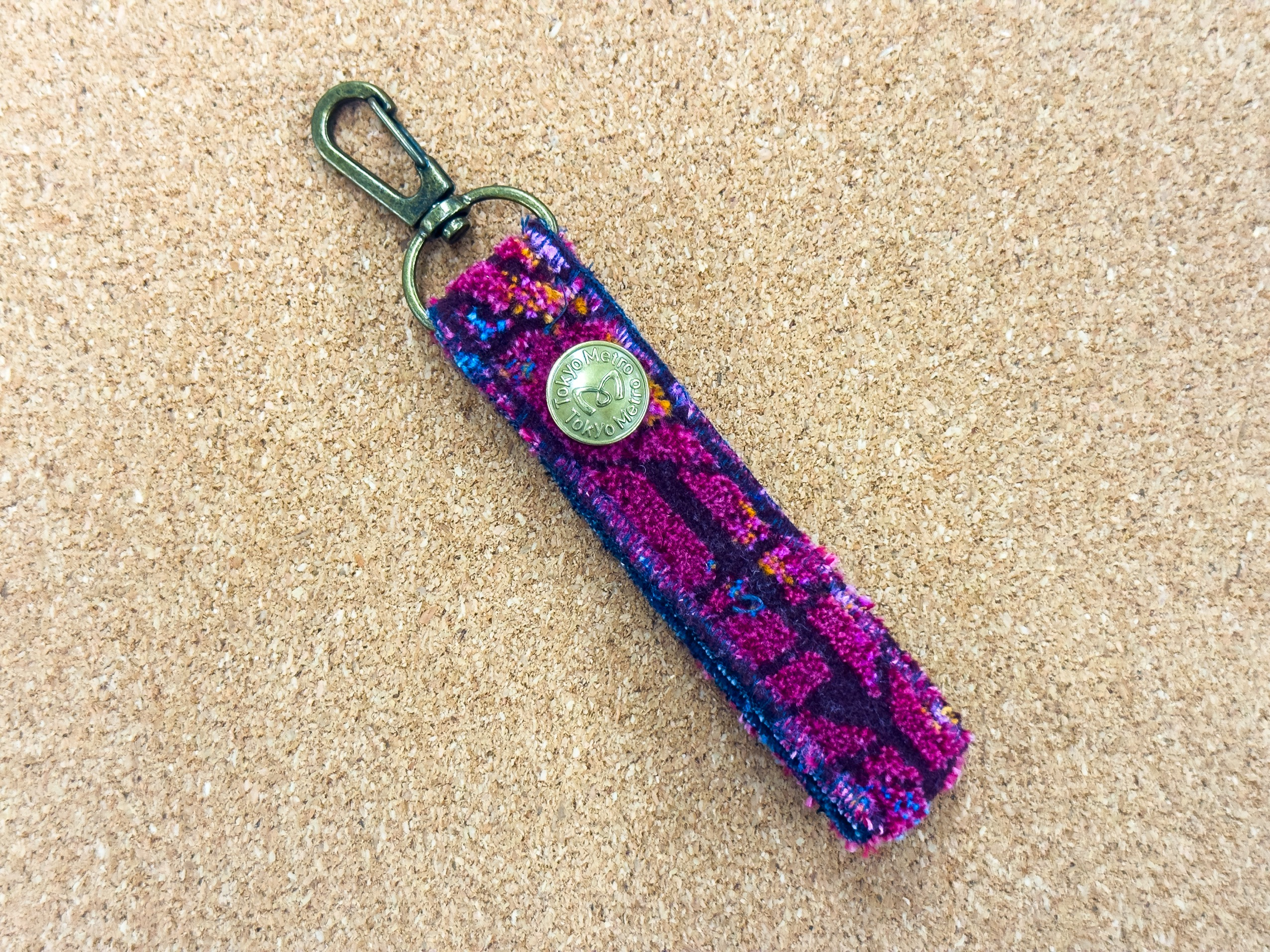そして、今回第一弾商品として出来上がったのが①ロゴ入りポーチ、②ボタン付き小ポーチ、③ボタン付きキーホルダーの3商品となります。