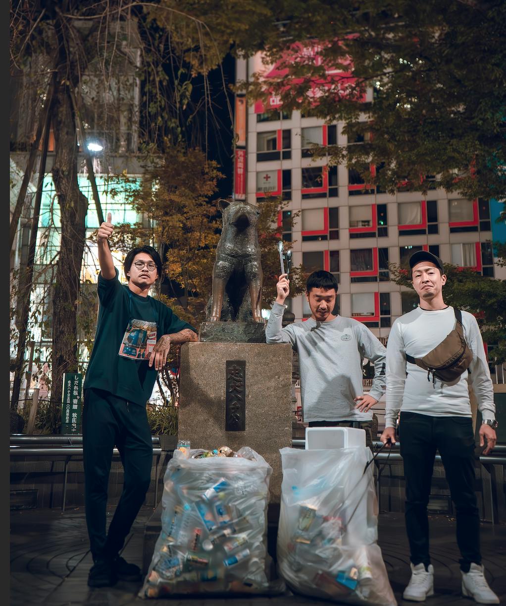 そして1日目の夜中にボクたち自然を愛する人間が渋谷の街へ繰り出し『ゴミ拾い』をするというボランティアプロジェクトをして駅前を中心に完全にクリーニングしてきました!