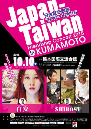 2018/04/10 09:38こんにちわ! 2015年に開催した第一回目のコンサート。 ポスター掲載します♪ 台湾公演をする中出逢ったアーティストさん、白安さんを招いて第一回目のコンサートを開催しました。 2015年、まだ熊本震災がある前で、震災後彼女のインスタ等で熊本を想うコメントがありました。 自分は被災したというにはそんなものでは無かったのですが、 震源地からは近く、自宅はヒビがはいったりと当時はほんと怖い体験をしました。 そんな中、台湾のみんなからも心配の声や、支援物資を送ってもらったりと、沢山のものをいただきました。 ありがとうございました! 最近では、台湾でも大きな地震がありました。 自分たちにできることを、やっていきたいと思います! もっと見る