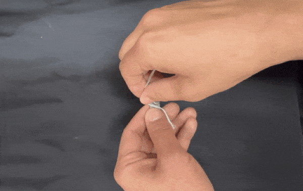 A:ハンドル柄の部分のボタン(円柱の部品)があります。このボタンの下部にあるスキマに1周回してかませるとそのまま固定できます。結んだりは面倒なのでしません。ボタンの隙間に糸をかませるだけで簡単に固定できます。そうして、お好みのテンションでフロス糸を貼って頂きフロス磨きをしていただけます。