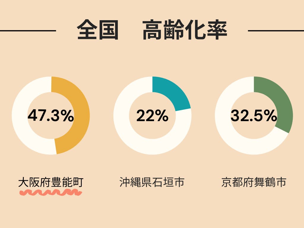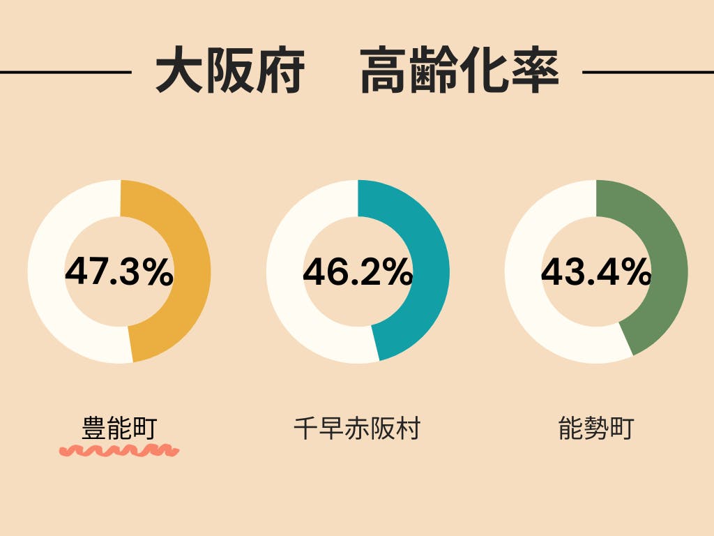 そんな魅力たくさんの豊能町ですが、地域課題が山積みです。高齢化率は全国市町村43/1718位、大阪府市町村1位で全国平均(28.8%)よりもはるかに高い数値となっています。なんと、大阪唯一の村である千早赤坂村よりも高齢化率が高い豊能町。