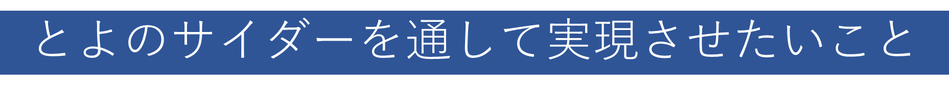 私は、農業を通して、次世代の子どもたちに安心安全な食と地球環境について学んでほしい。そんな思いで活動しています。自分で種から育てたものを、みんなで食べて美味しいと感じた経験は一生の宝物になると信じています。私自身が移住し感じたことは、そんな場所と教え手が減ってきているということです。その土地を学び、伝えていくという役目を担う若者世代の農業者を増やすことが急務だと感じています。農業者として一人で地域の担い手になるということは、体力的にも経済的にも簡単なことではありません。地域のみんなと協力してこの地域を盛り上げていくこと、それぞれが得意分野で活躍し、つながりを持つことが必要です。とよのサイダーが、そのつながりを生むきっかけとしてみんなに愛されたら嬉しいなと思っています。