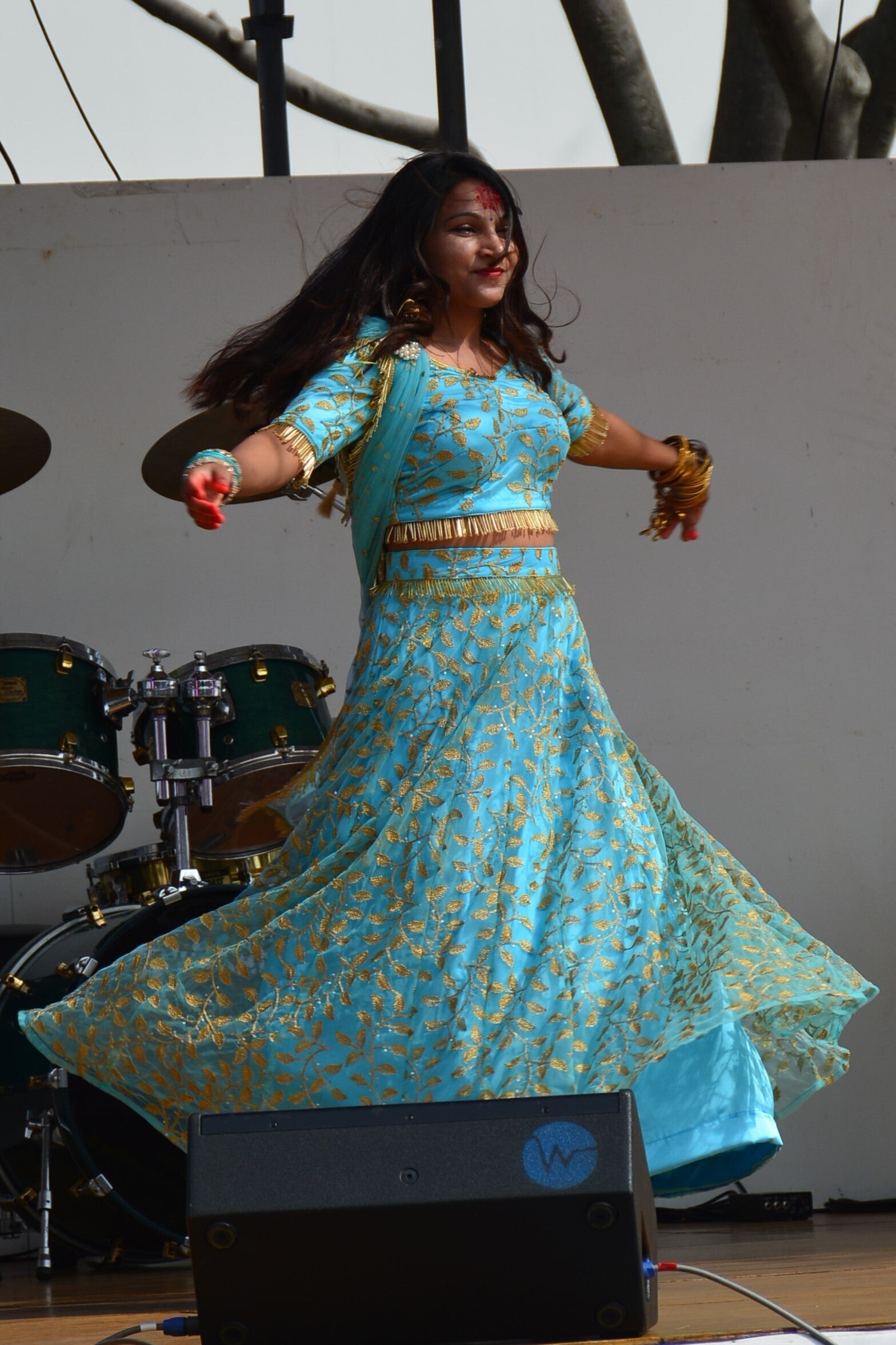 ステージでは、華やかな民族衣装を着た学生がパフォーマンスを行います。