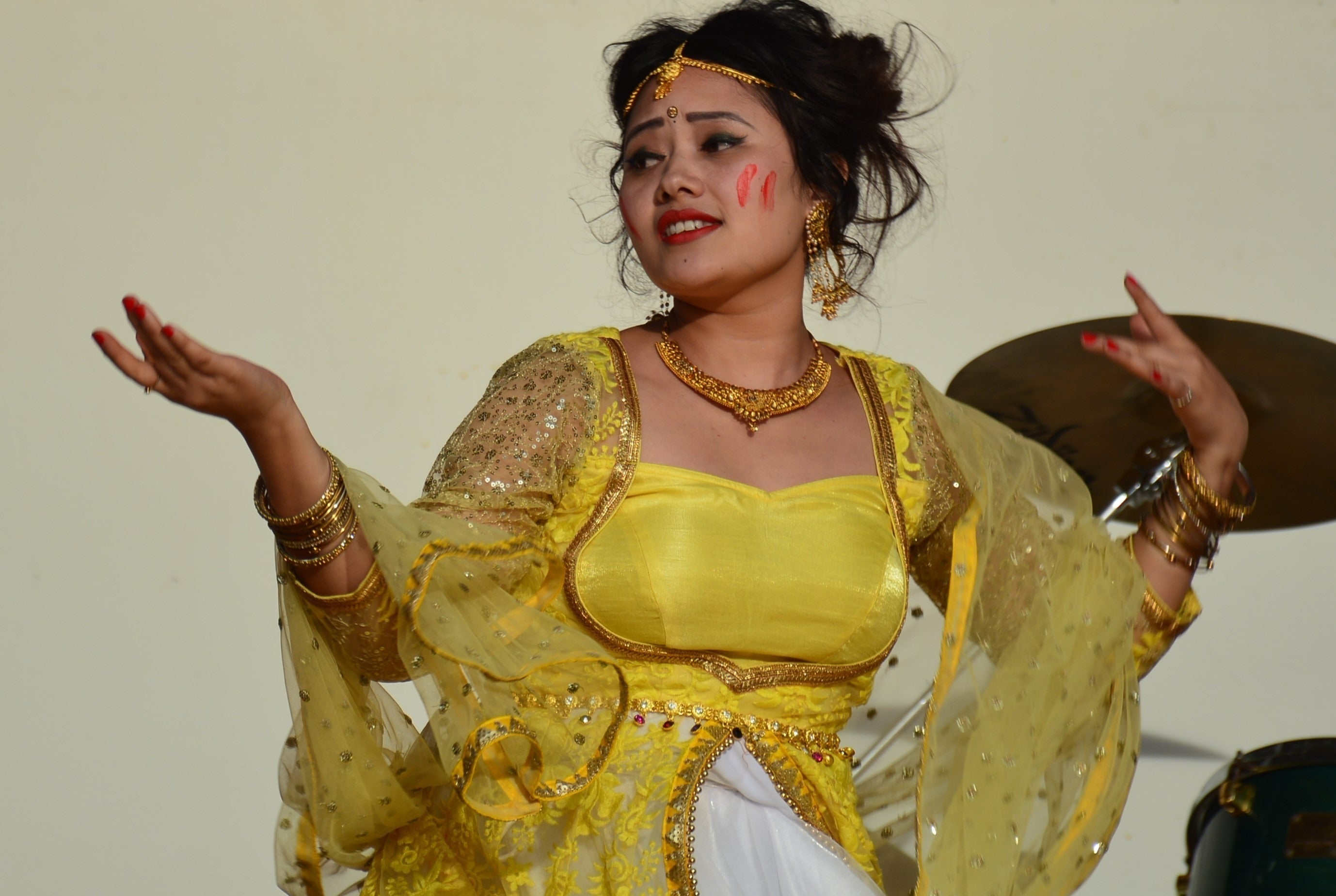 ステージでは、華やかな民族衣装を着た学生がパフォーマンスを行います。