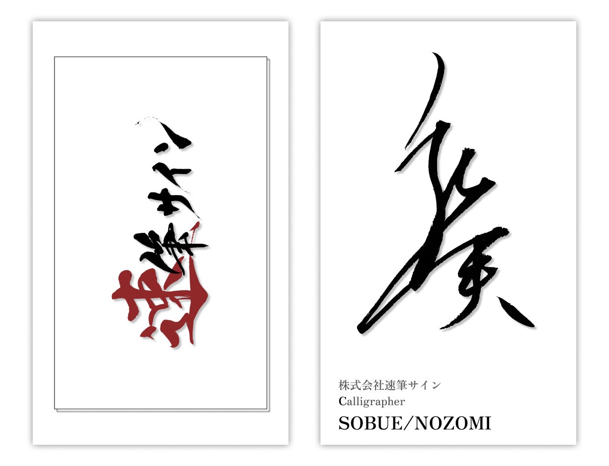 私の名刺と速筆サイン代表の内山瞭が使用している名刺を添付しています。