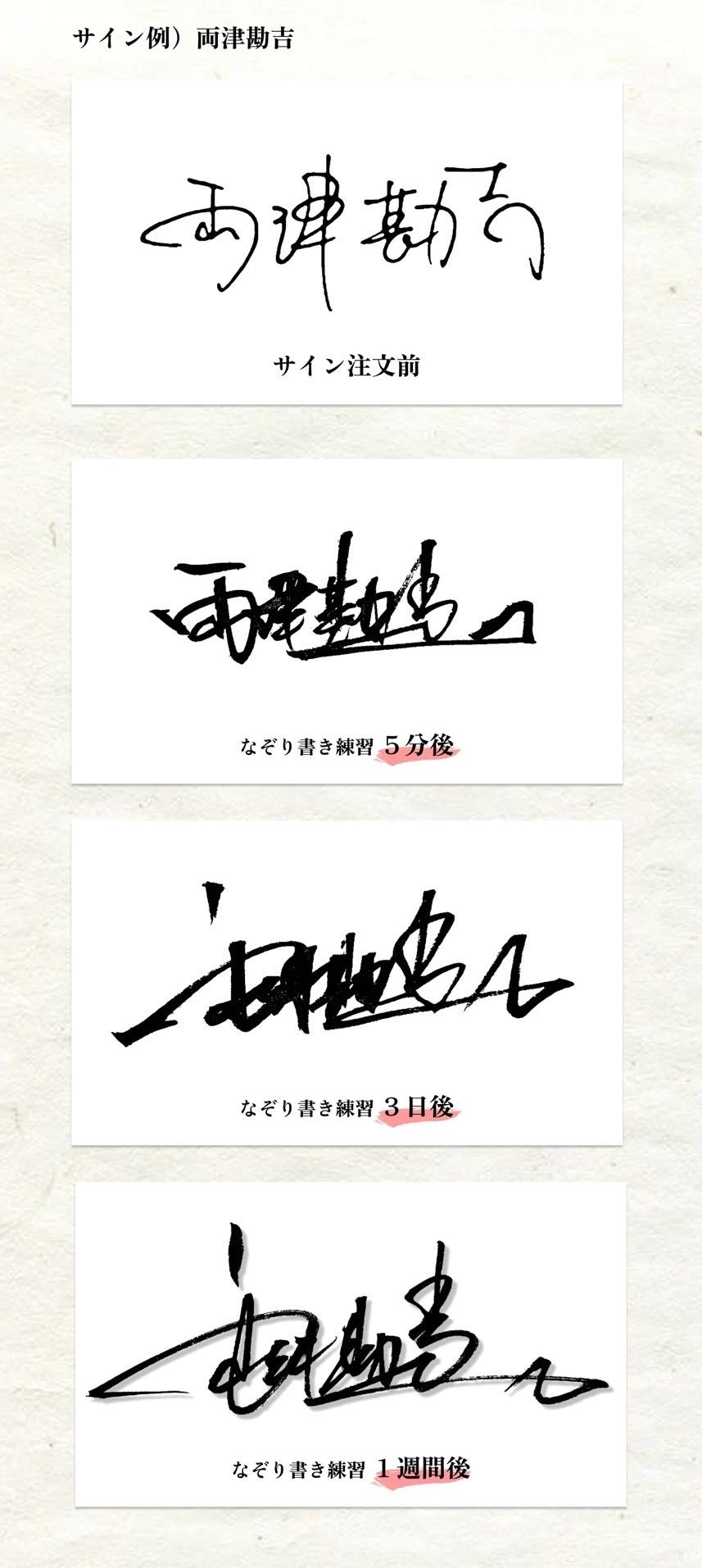 今回サインを初めて作成するという方もいらっしゃるかと思いますので、サイン習得の過程を画像にてご紹介します。