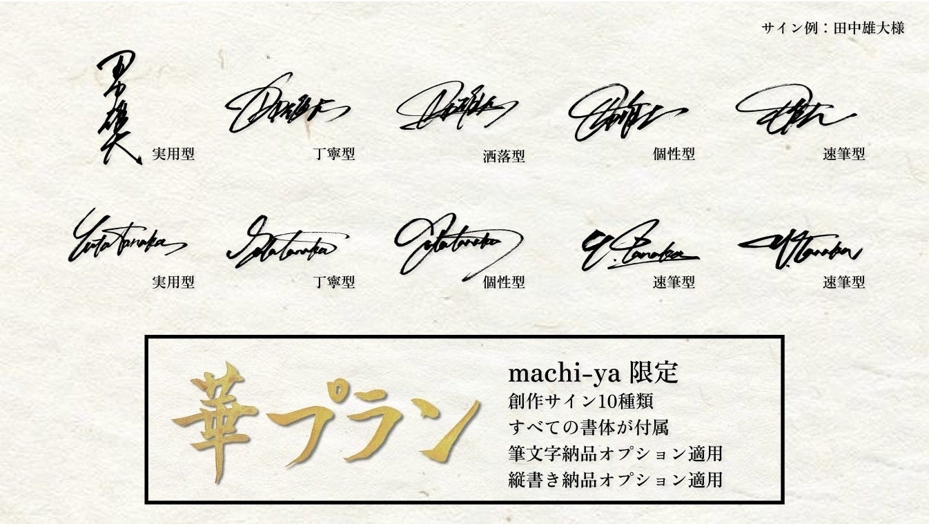 「5つの書体すべて手に入れたい!」「書道家の本領が発揮される筆文字サインが欲しい!」という方は是非【華プラン】をご注文ください!