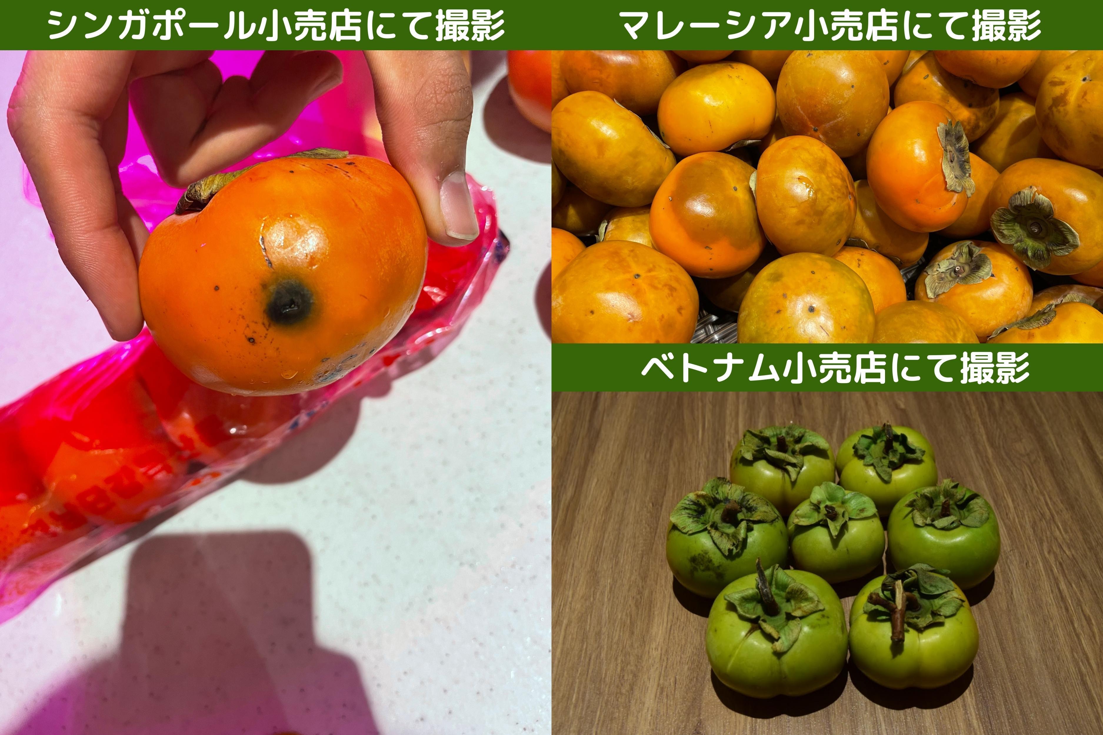 下記の写真をご覧の通り他国産の柿を見てみると、皆さんがよく食べている日本産の柿と比べてはるかに品質が劣っていることが分かります。