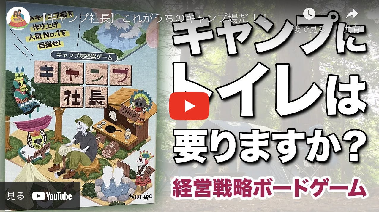 実は、先ほどYouTuberのボドゲかぞくさんが、キャンプ社長のプレイ動画をアップしてくださいました。