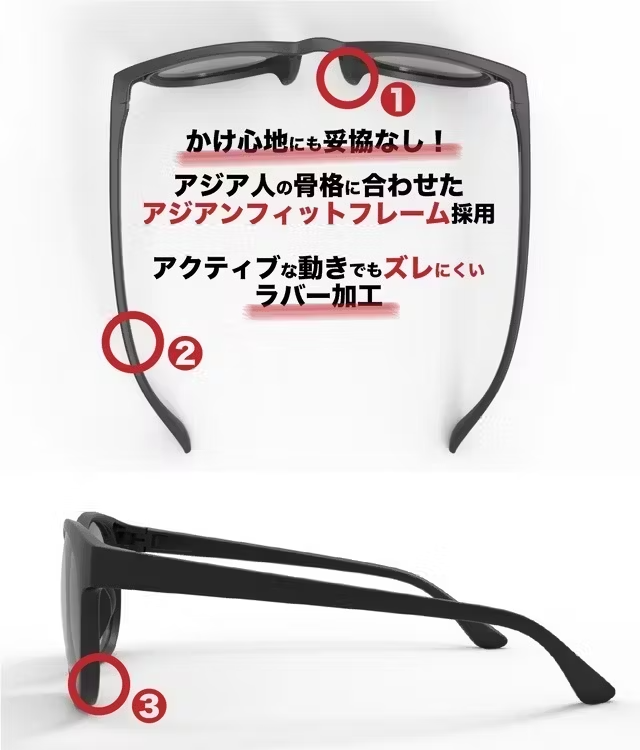 ・サングラスやメガネは鼻に跡がつくことが多かったけど、これは跡がつかない。めちゃくちゃ軽いから長い時間かけっぱなしでも全然疲れにくい。(Amazonユーザーさん)