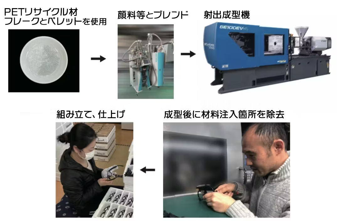 フレームには、PETリサイクルを原料とし、廃棄されたペットボトルを再利用したPET樹脂が使われており、環境に優しい素材を使用しています。