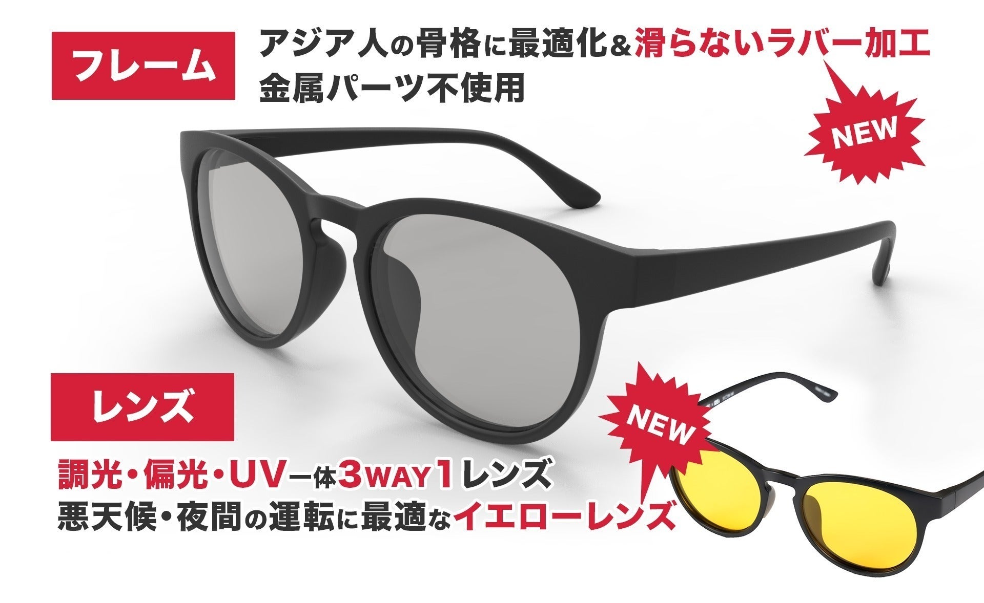 ・原産国:日本・レンズ特徴:偏光調光レンズ・重量:わずか20g