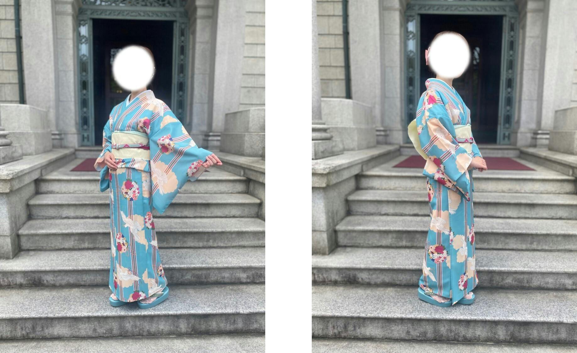 1反から仕立てられる着物の身長サイズに上限はありますが、基本的に着用する方のサイズを問わず、1反全てを使って仕立てます。
