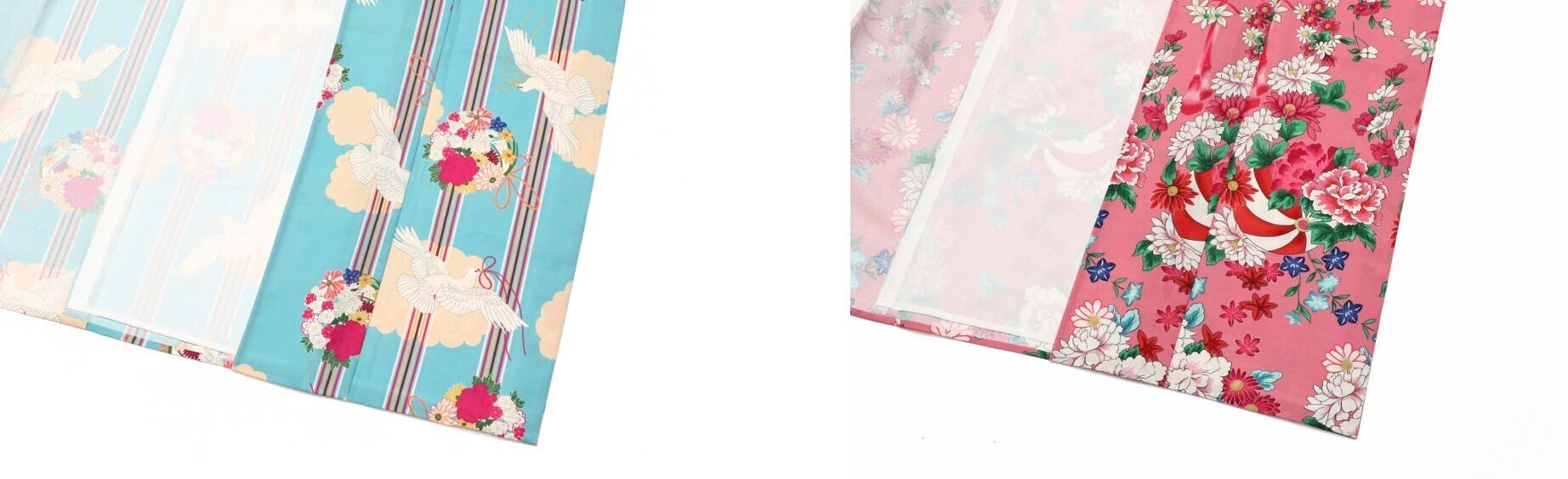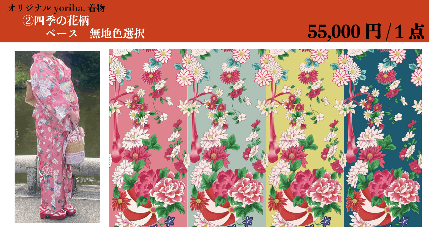 ② <四季の花柄> の 「ベース:無地」、「カラー:4色」を選択して単衣着物を仕立てる。