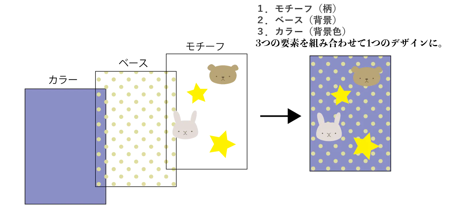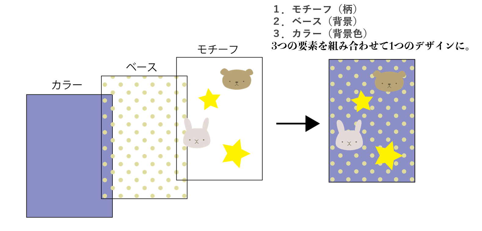 この3つの要素を組み合わせて1つのデザインを作ります。