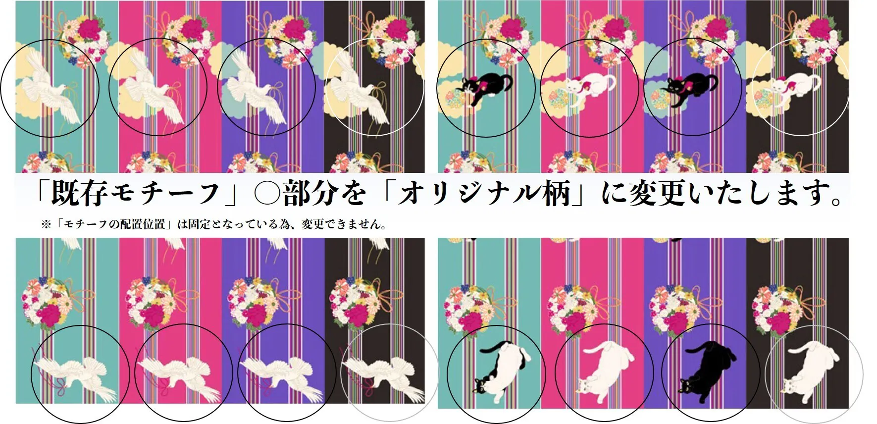 ★「縦縞」と「花薬玉」、「モチーフの配置位置」は固定となっている為、変更できません。
